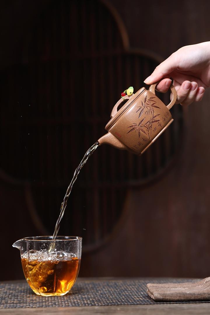 【作品介紹】此款壺形線條流暢,壺把,壺嘴,壺身壹氣呵成栩栩如生,是收藏把玩的好壺,泥料色澤古樸典雅,日久使用,漸露鋒芒,養成變化快,溫潤莊重,用其泡茶,使用的年代久,壺身就溫潤,泡出來的茶湯也就醇郁芳馨。