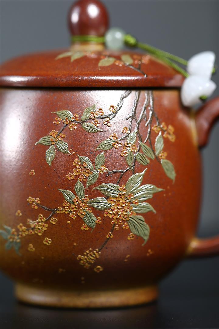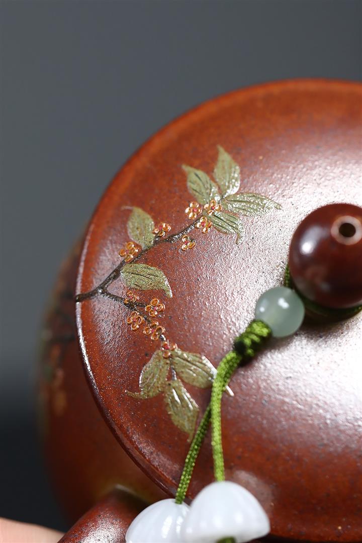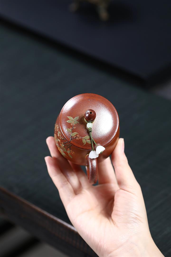 原礦紫砂君子蘭刻繪漢鐸茶壺POT7517