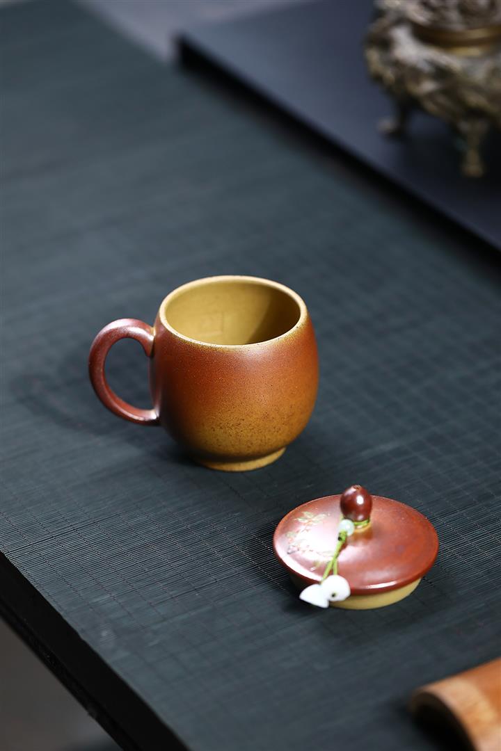 180cc原礦火焰燒黃金段泥金潘柴窯蓋杯POT9308