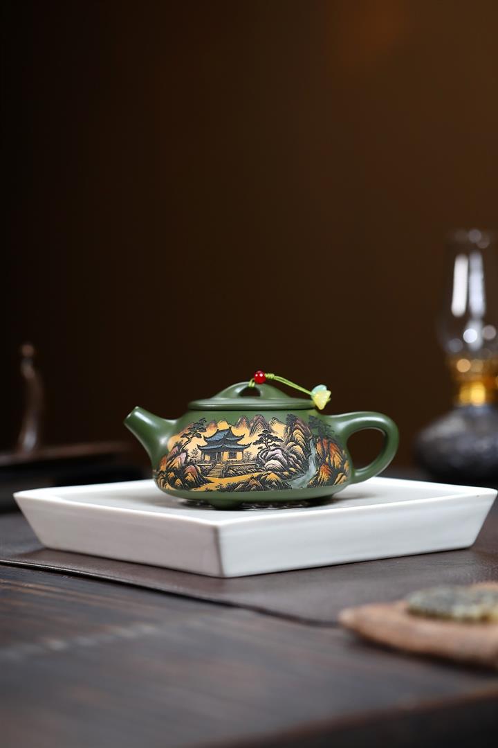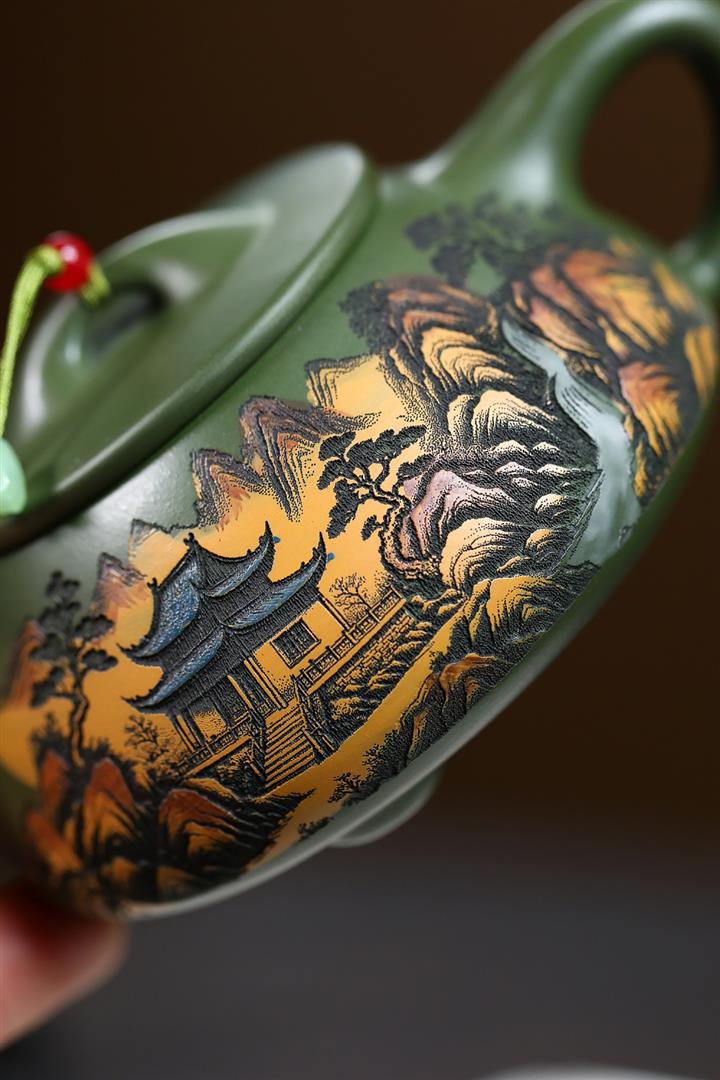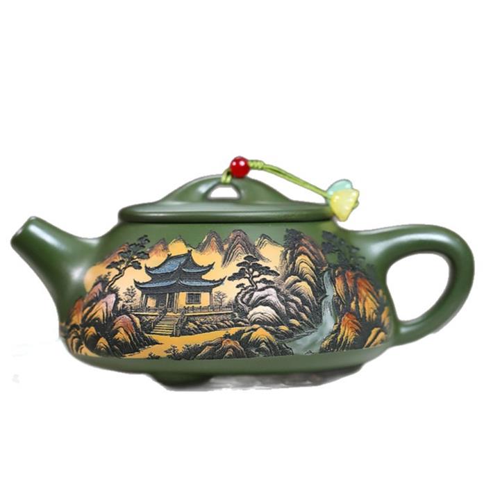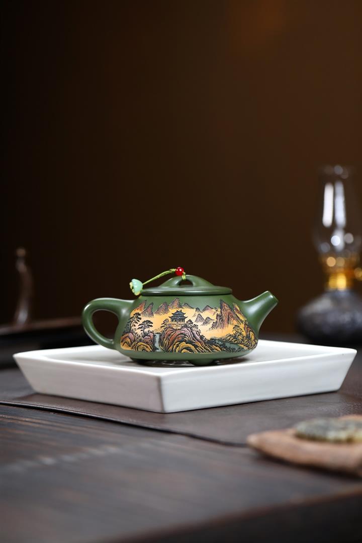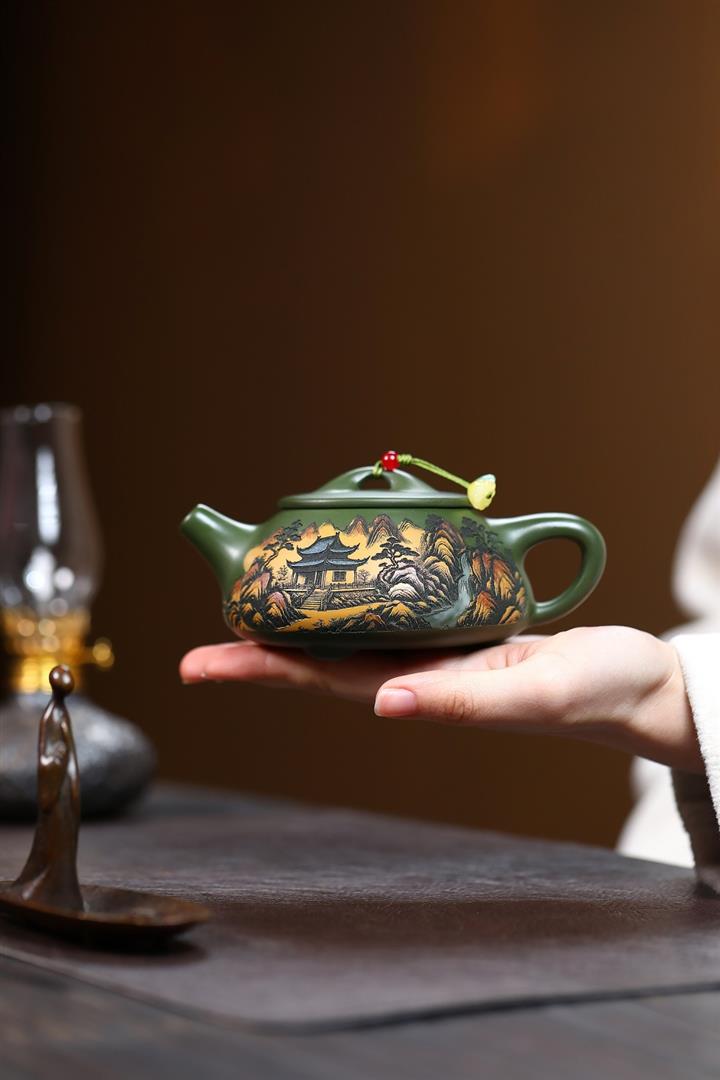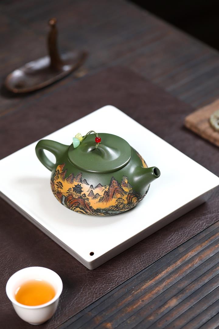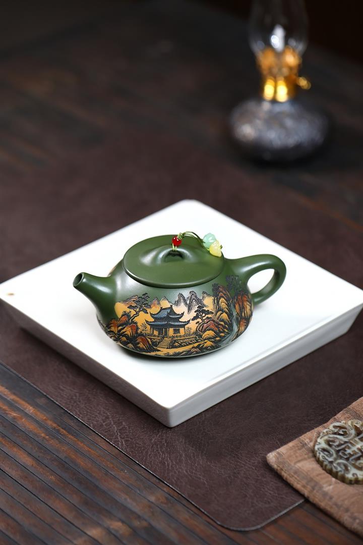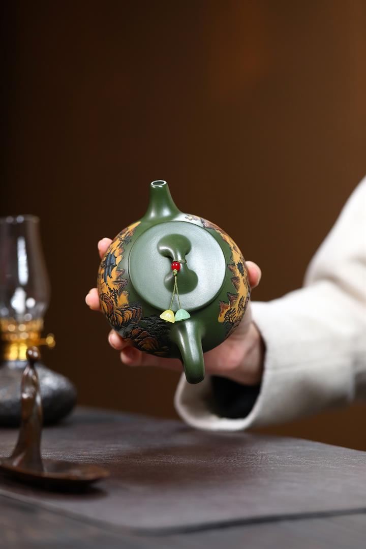 250cc原礦綠泥彩刻清幽石瓢茶壺POT9349