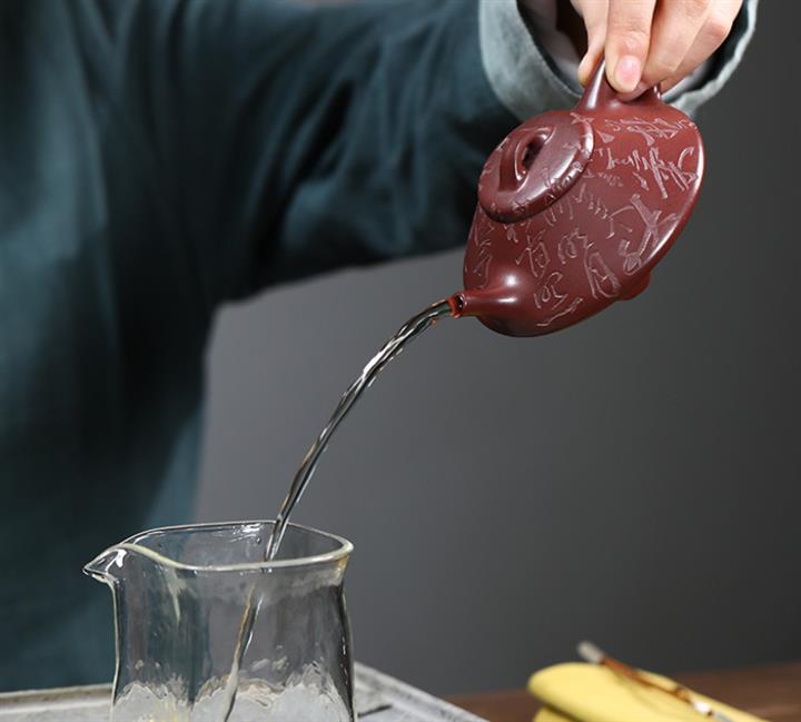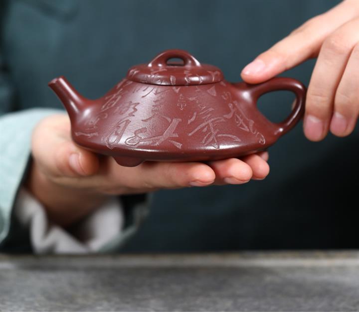 【泥料特點】砂土氣重,似淳實農民,日久使用,漸露鋒芒,養成變化,溫潤莊重。紫砂是壹種雙重氣孔結構的多孔性材質,氣孔微細,密度高。用紫砂壺沏茶,不失原味,且香不渙散,得茶之真香真味。紫砂使用越久,壺身色澤越發光亮照人,氣韻溫雅。紫砂壺長久使用器身會因撫摸擦拭,變得越發溫潤光澤。