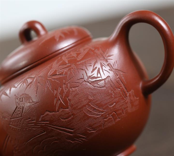 原礦大紅袍潘壺五牛圖紫砂壺POT4602