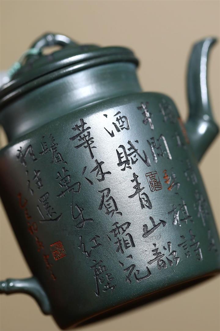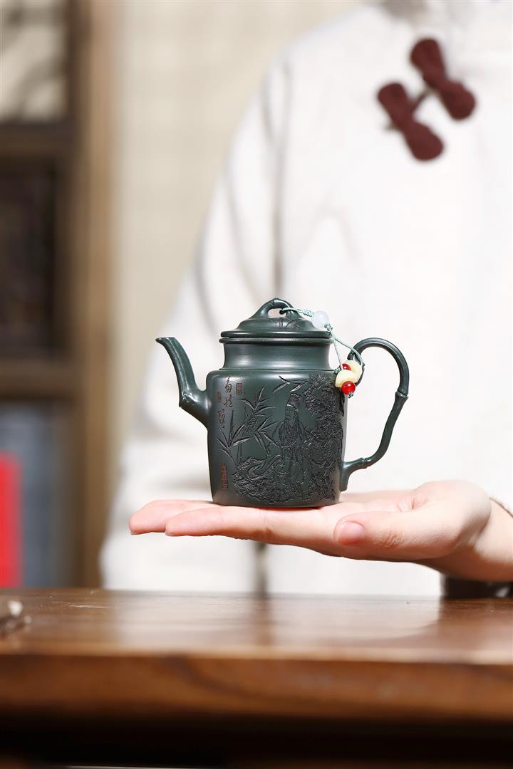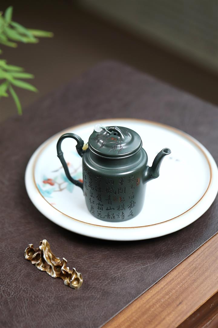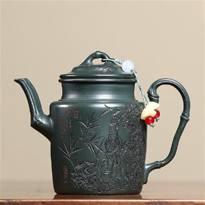 170cc原礦翡翠綠泥清風竹韻泡茶壺POT9366