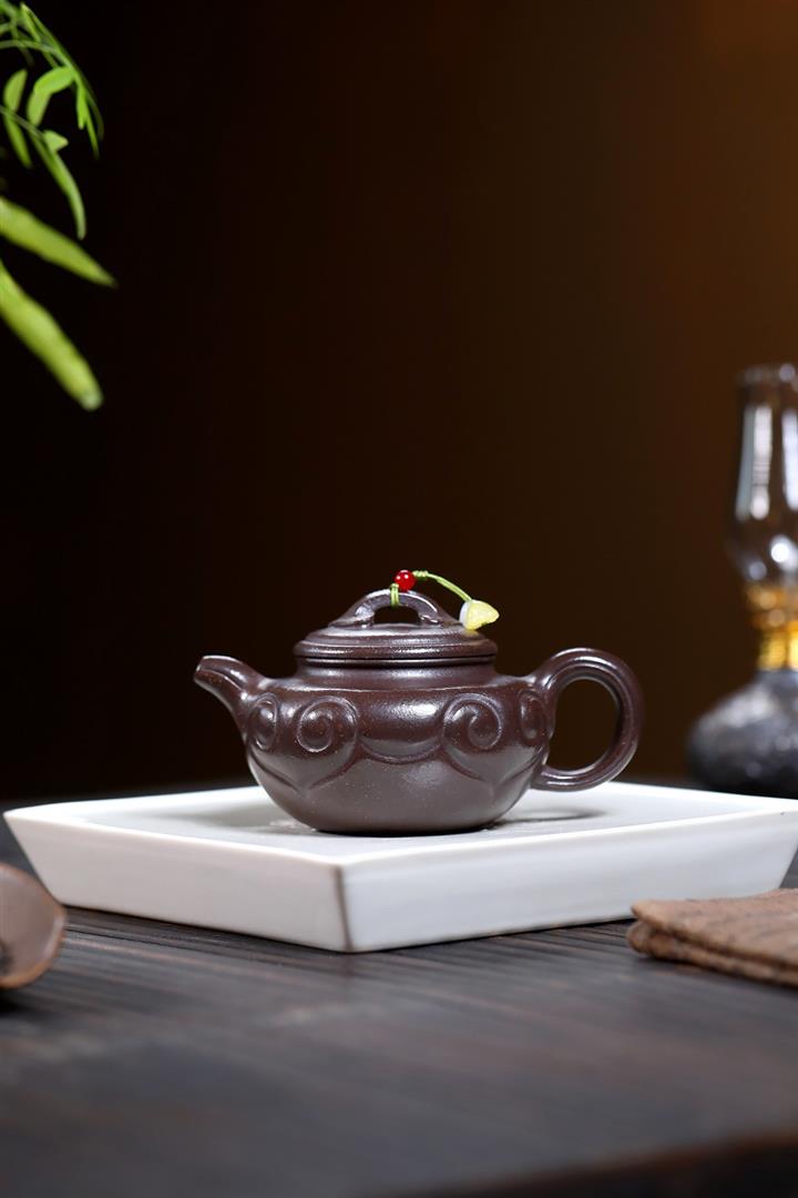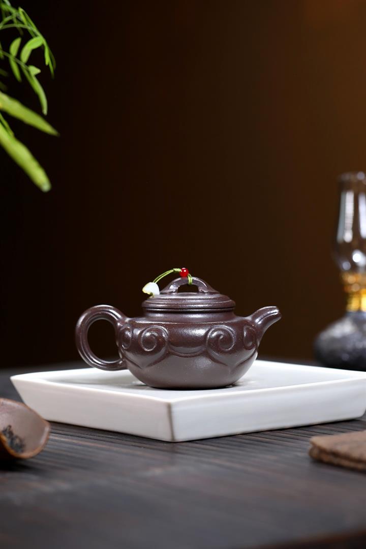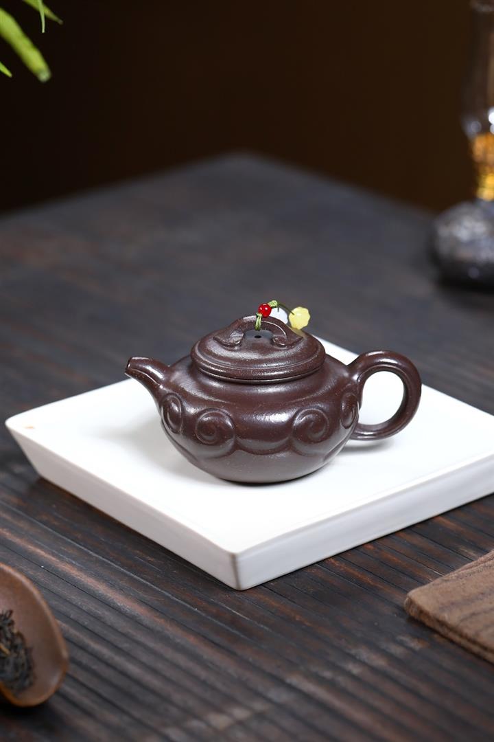 原礦小煤窯朱泥手工琺瑯彩桑盤壺POT6712
