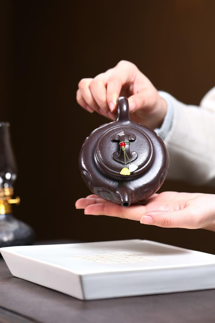 原礦紫泥手工鎏金德鐘茶壺POT6710