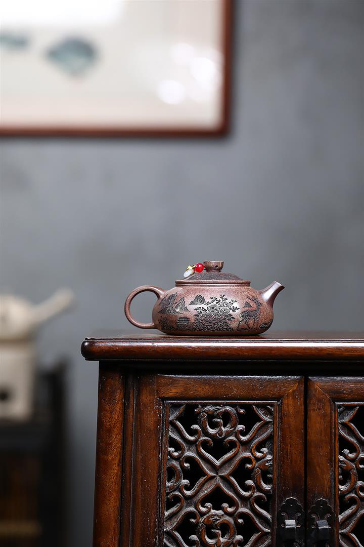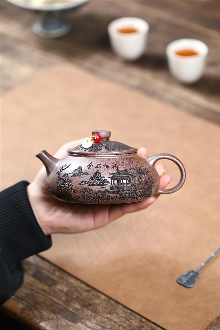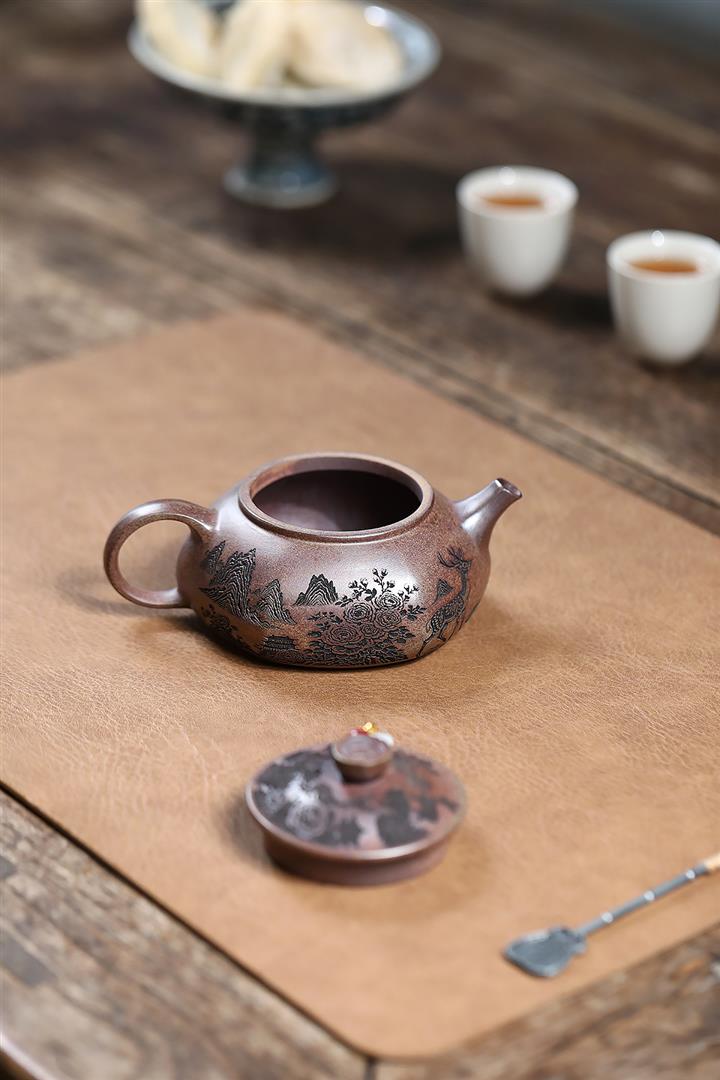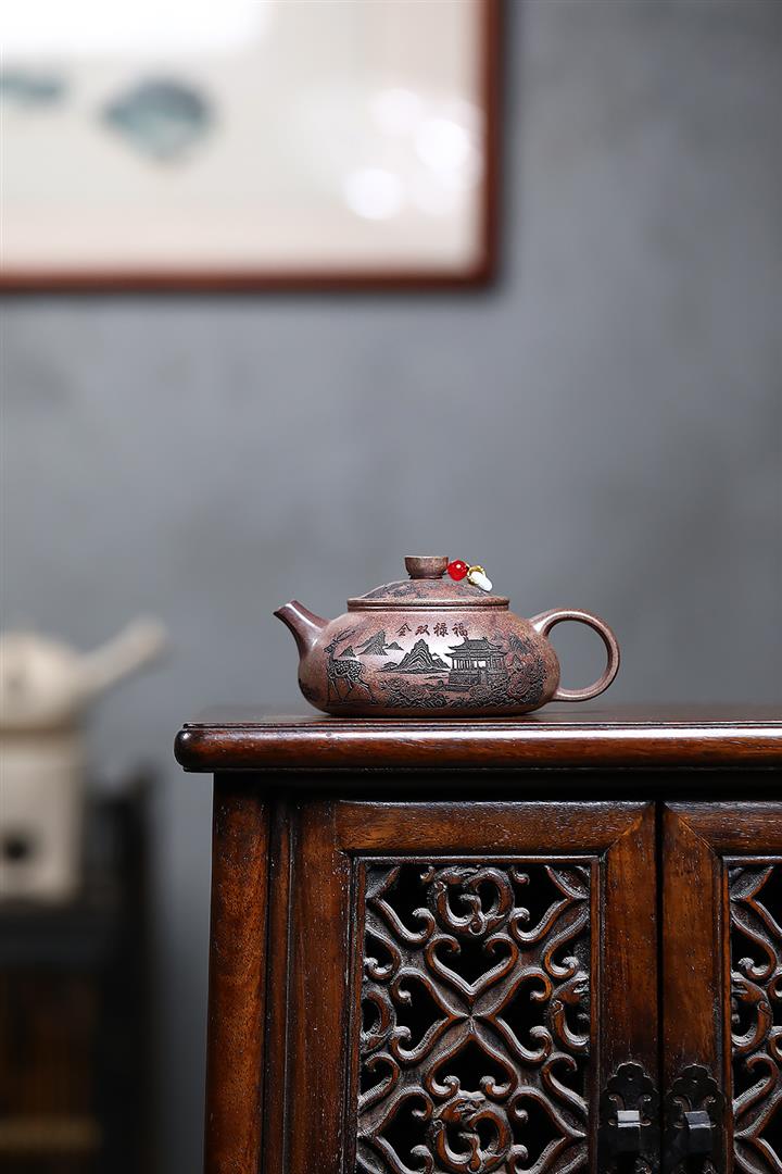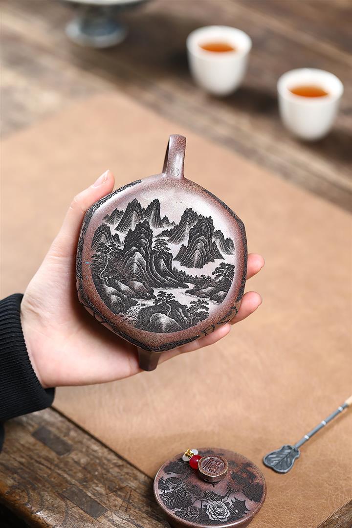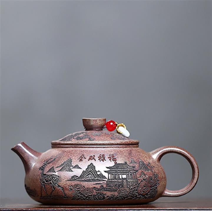 原礦紫泥山水瓦瓢紫砂壺POT5328