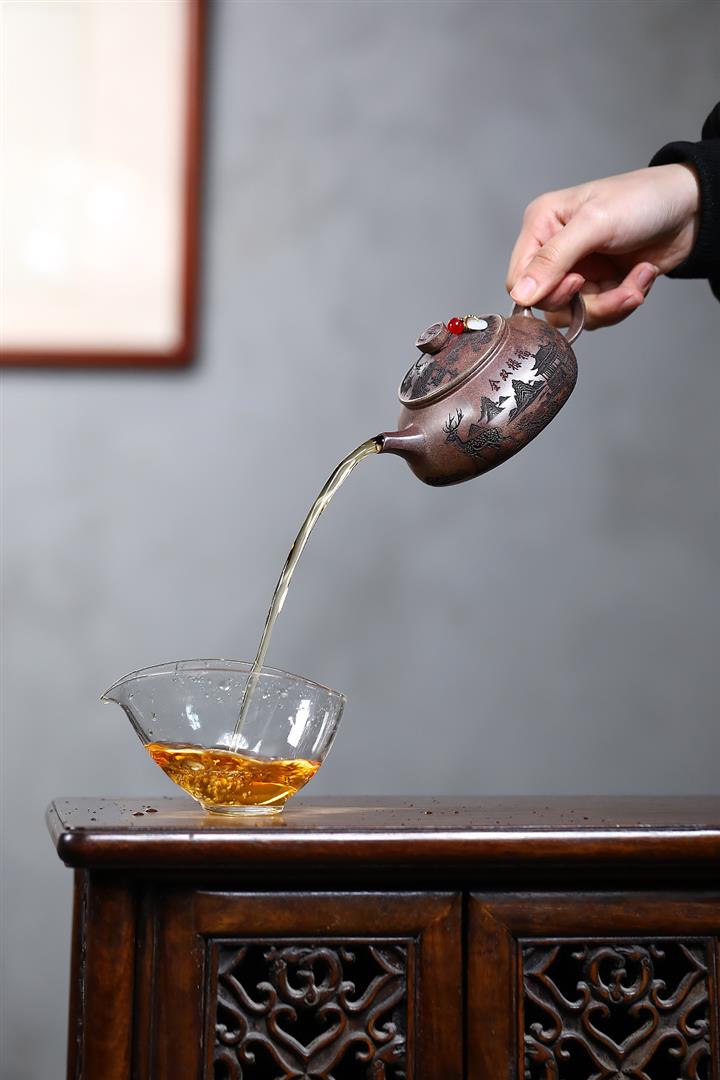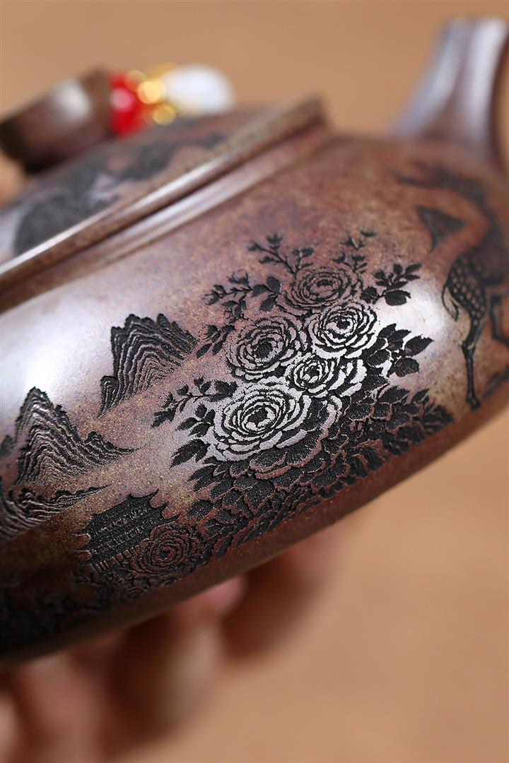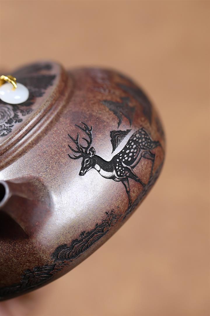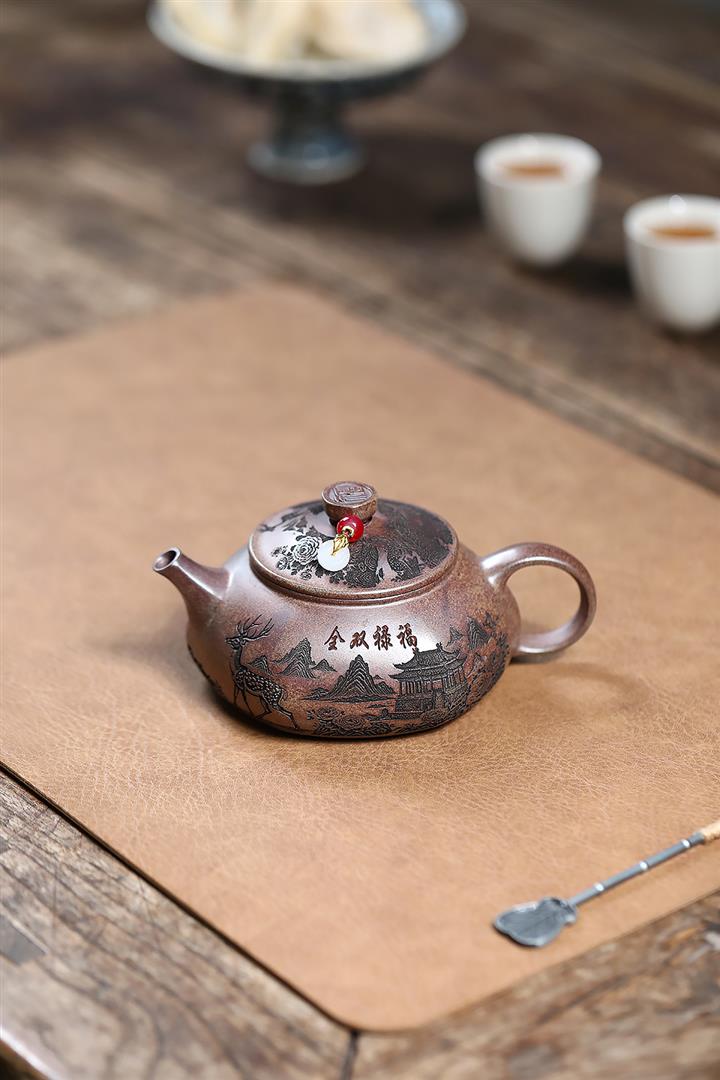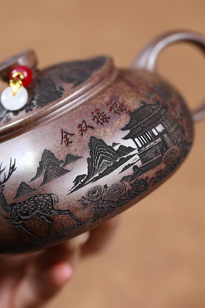 原礦紫泥山水瓦瓢紫砂壺POT5328
