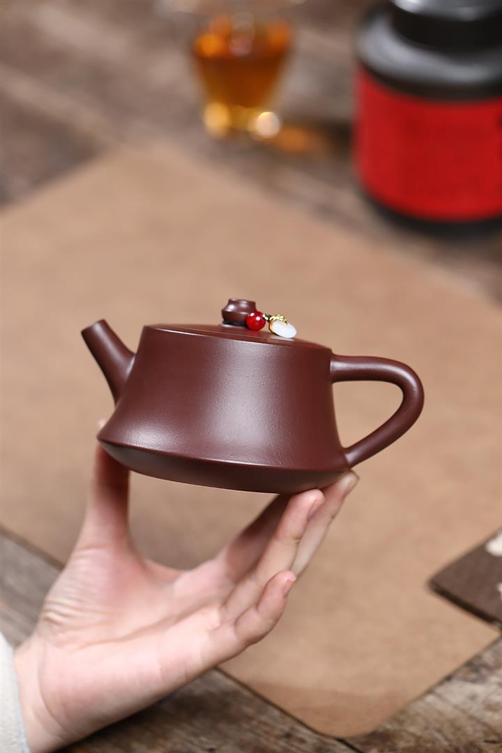 【作品介紹】此款壺形線條流暢,壺把,壺嘴,壺身壹氣呵成栩栩如生,是收藏把玩的好壺,泥料色澤古樸典雅,日久使用,漸露鋒芒,養成變化快,溫潤莊重,用其泡茶,使用的年代久,壺身就溫潤,泡出來的茶湯也就醇郁芳馨。