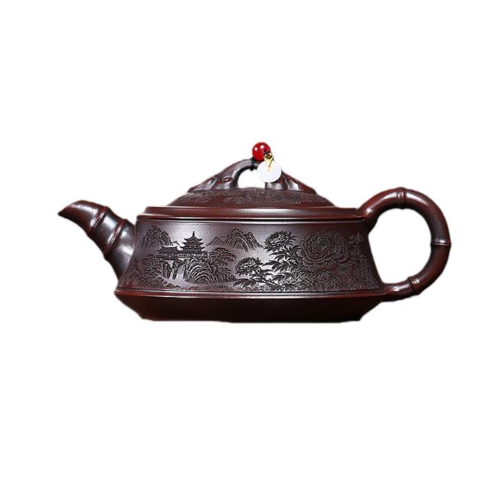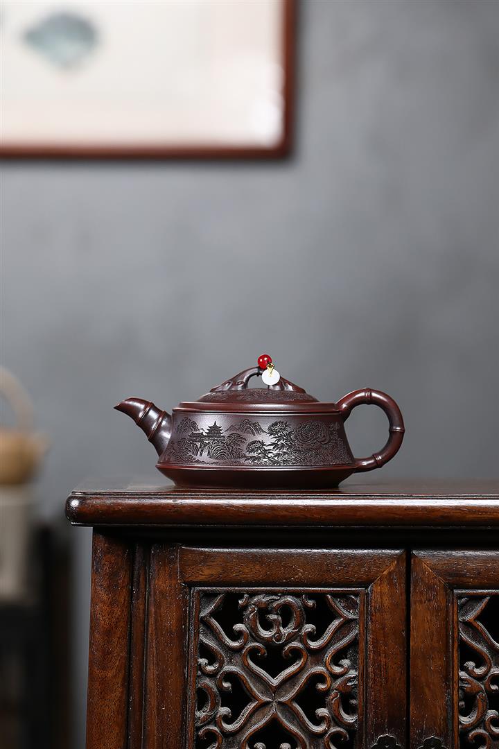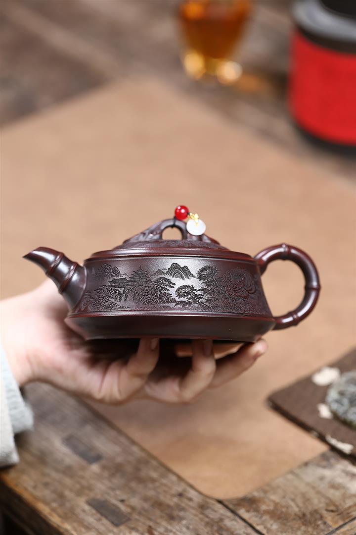 260cc原礦古烏泥滿刻竹影熊韻茶壺POT8181