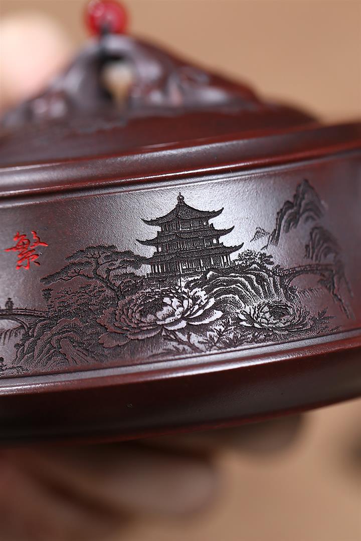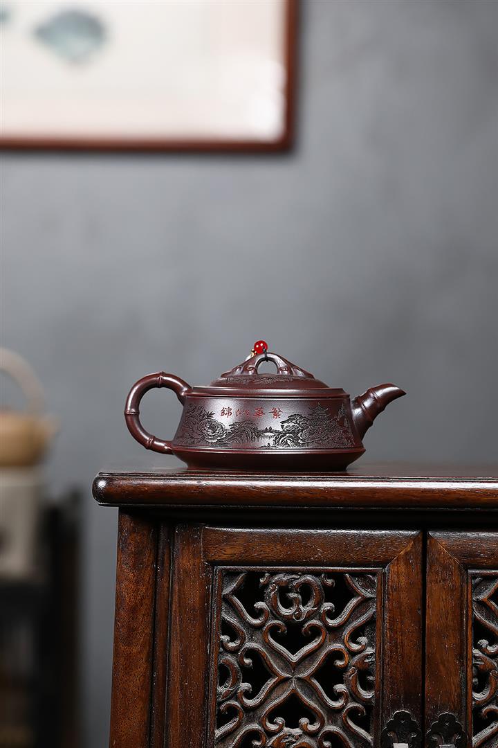120cc雞血大紅袍彩刻小龍蛋茶壺POT8177