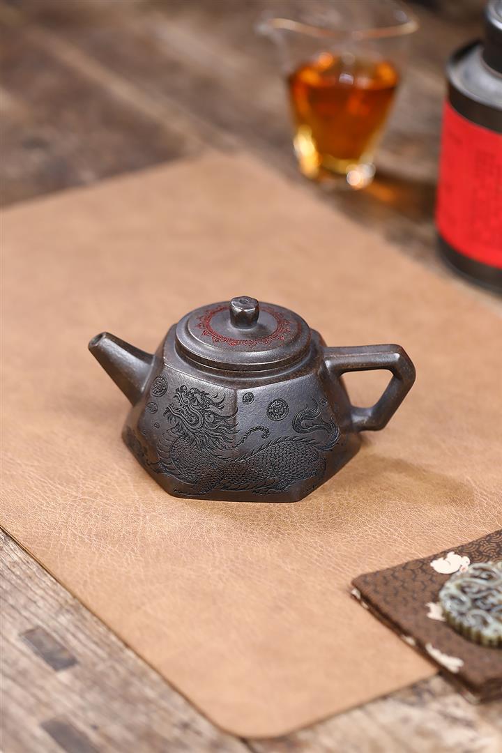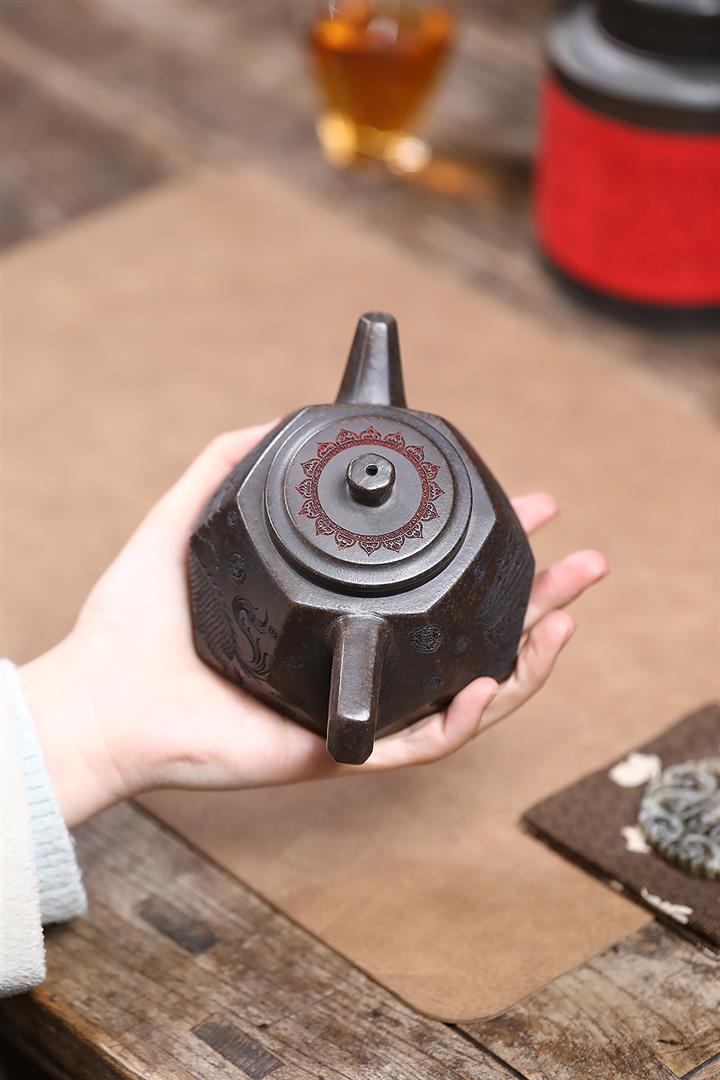 原礦大紅袍泥繪汲直紫砂壺POT4813