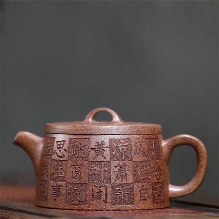 150cc原礦沈香泥柴燒刻字漢瓦泡茶壺POT9502