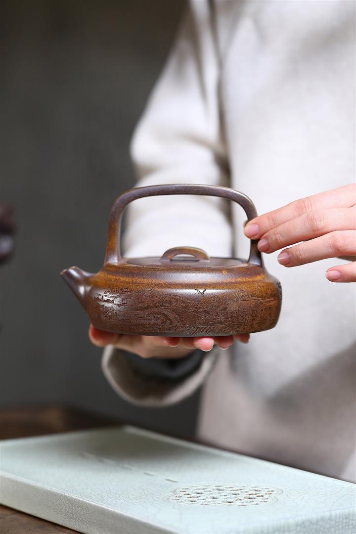 350cc龍窯高溫柴燒龍骨金砂提梁泡茶壺POT9503