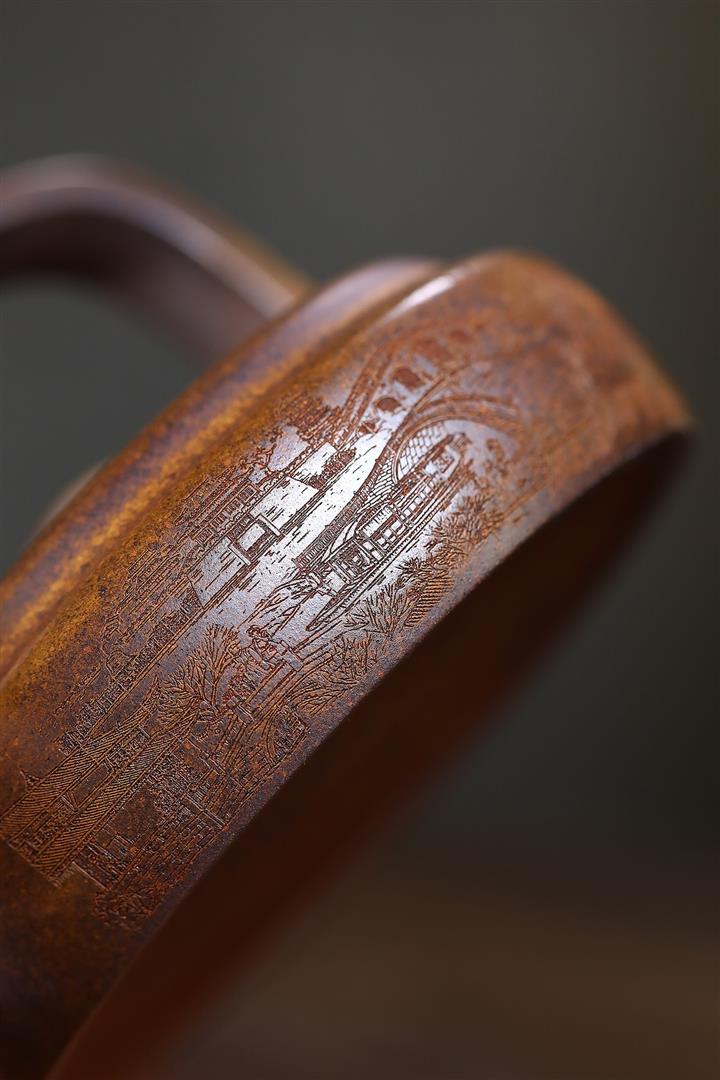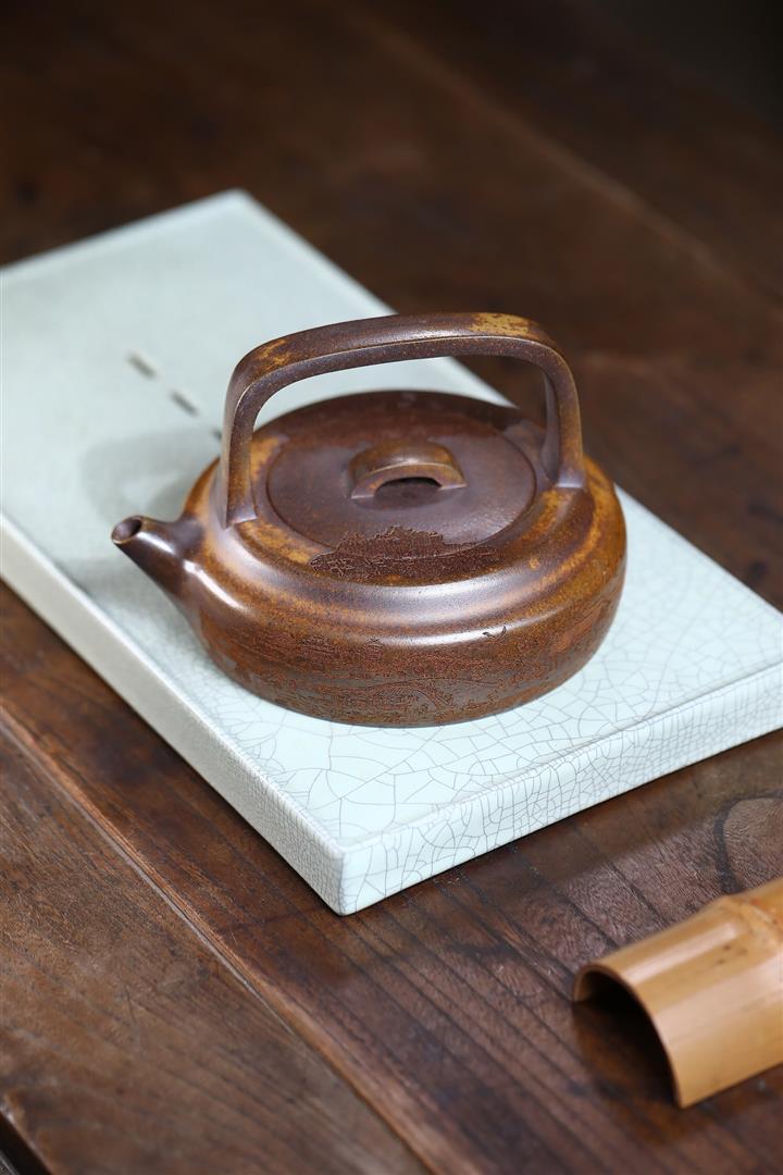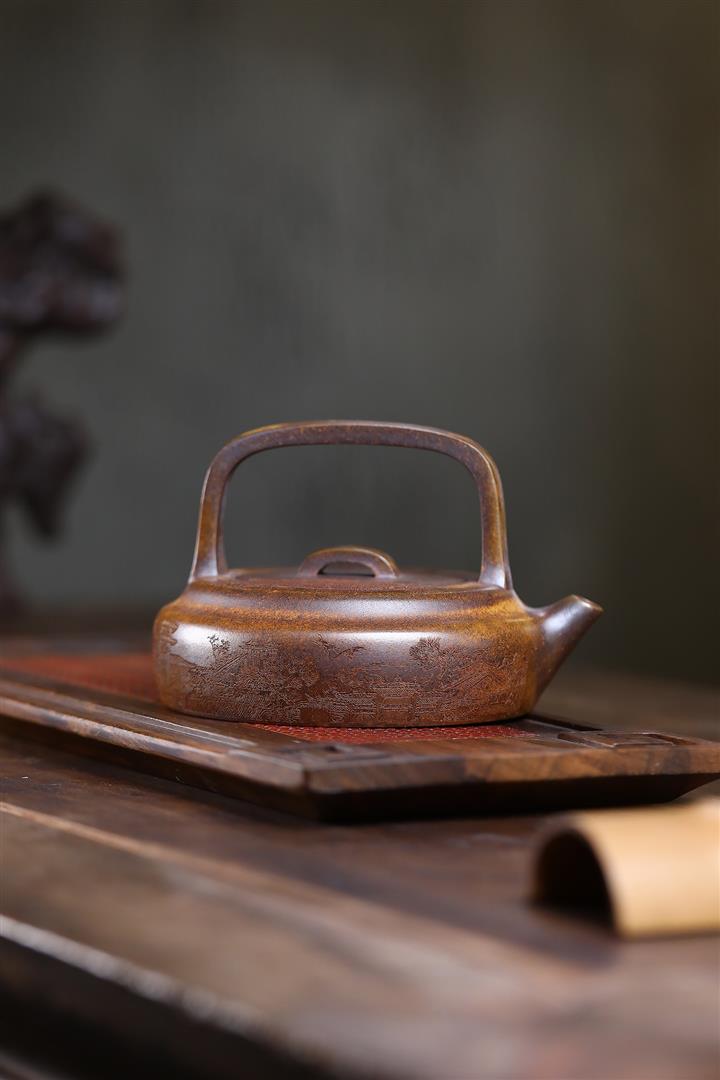 原礦綠泥刻繪太湖石竹趣茶壺POT7196