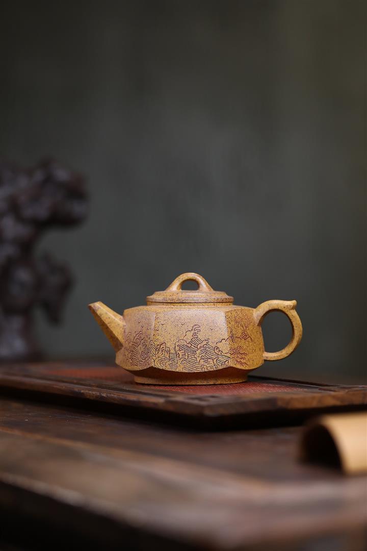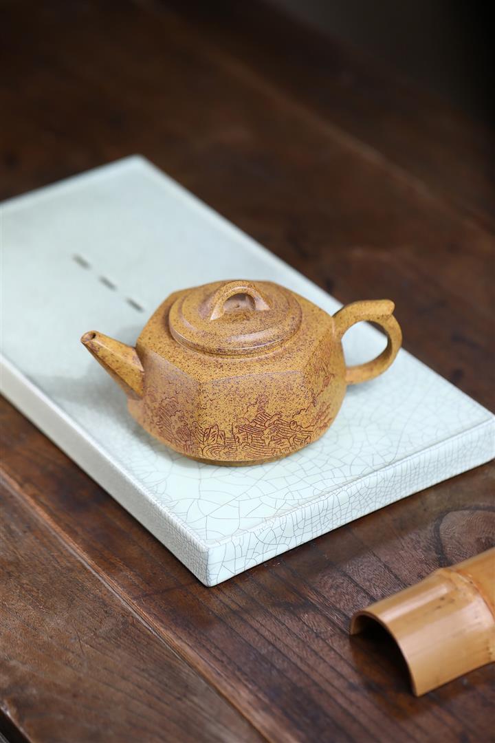 280cc龍骨金砂龍窯柴燒六方觀滄海泡茶壺POT9504