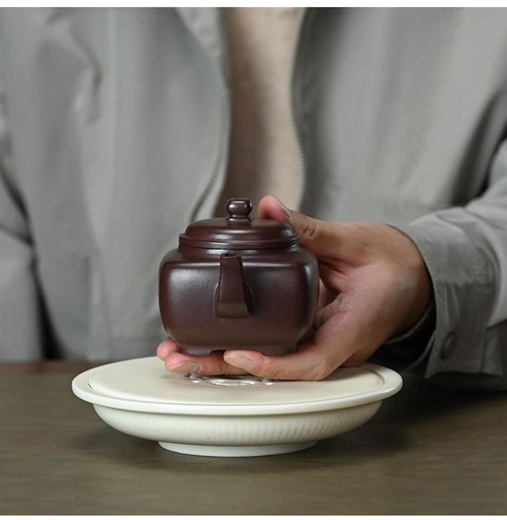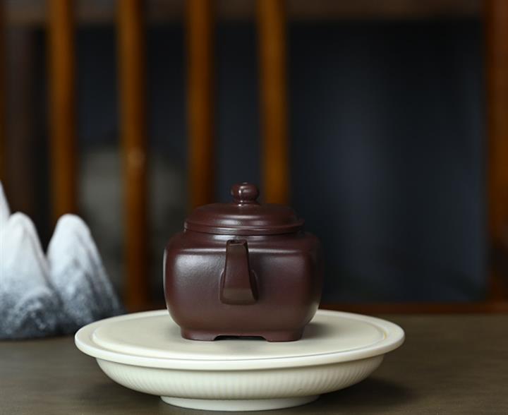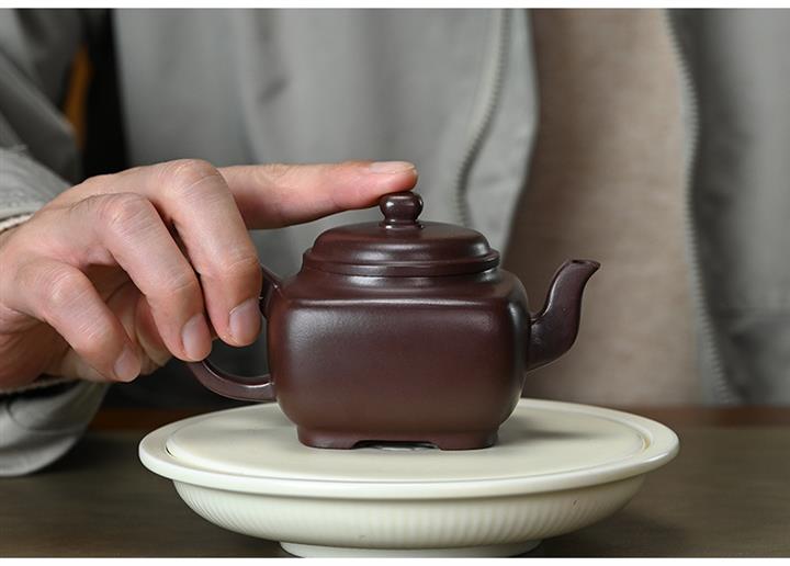200cc原礦紫茄泥四方君玉光素泡茶壺POT9549