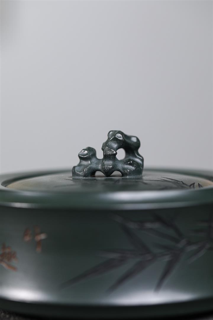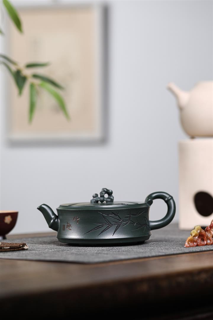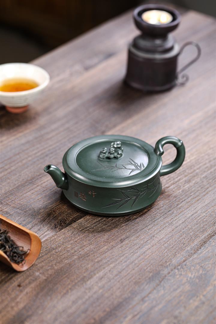 280cc原礦綠泥太湖石竹趣泡茶壺POT9556