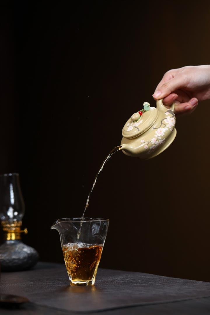 【泥料特點】砂土氣重,似淳實農民,日久使用,漸露鋒芒,養成變化,溫潤莊重。紫砂是壹種雙重氣孔結構的多孔性材質,氣孔微細,密度高。用紫砂壺沏茶,不失原味,且香不渙散,得茶之真香真味。紫砂使用越久,壺身色澤越發光亮照人,氣韻溫雅。紫砂壺長久使用器身會因撫摸擦拭,變得越發溫潤光澤。