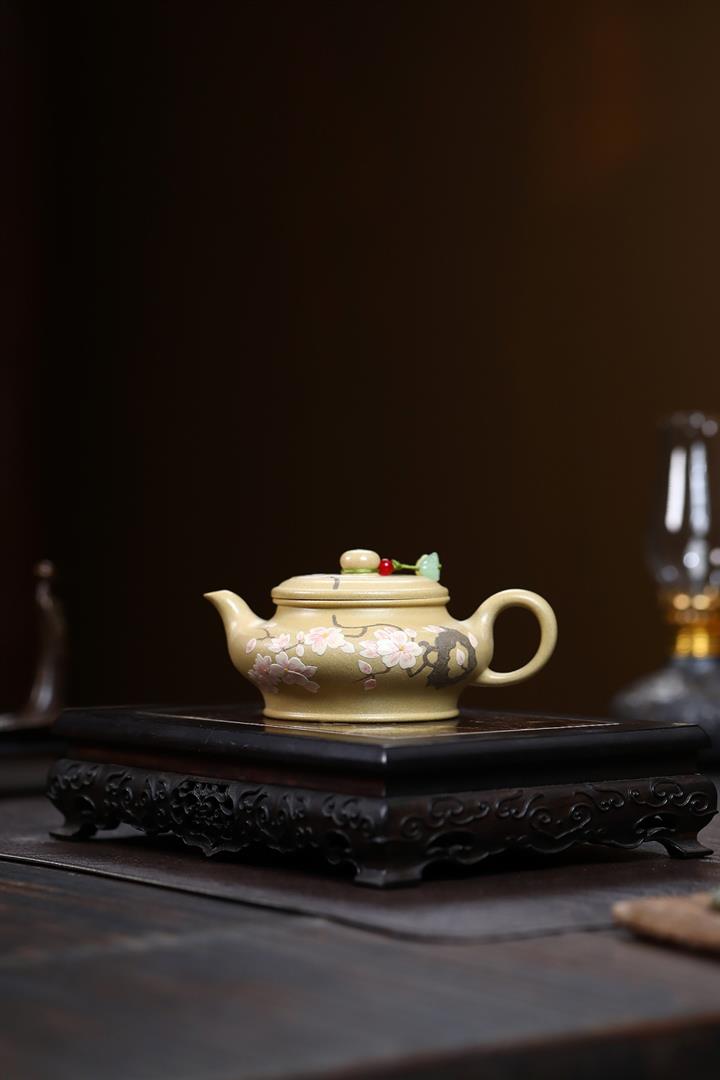 紫砂壺名家老紫泥刻繪周盤壺POT4009