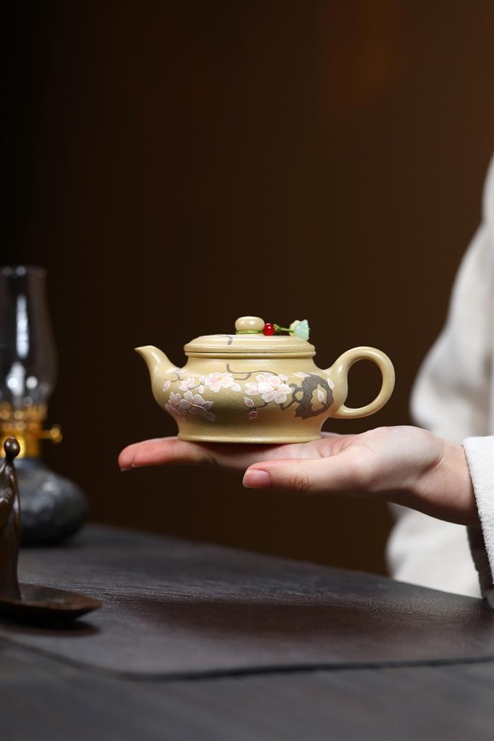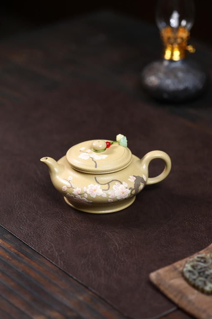 紫砂壺全純手工泥繪喜上眉梢泡茶壺原礦紫泥POT4012