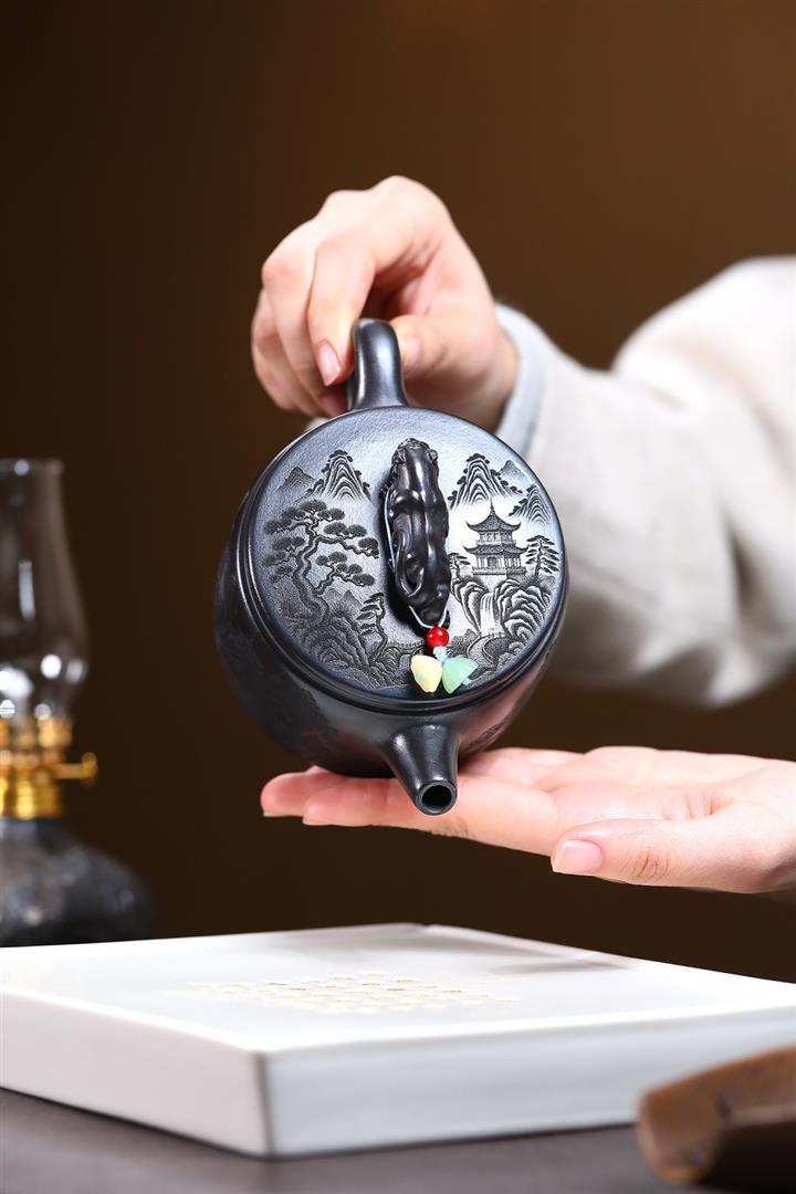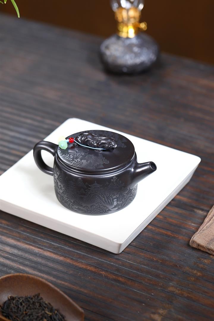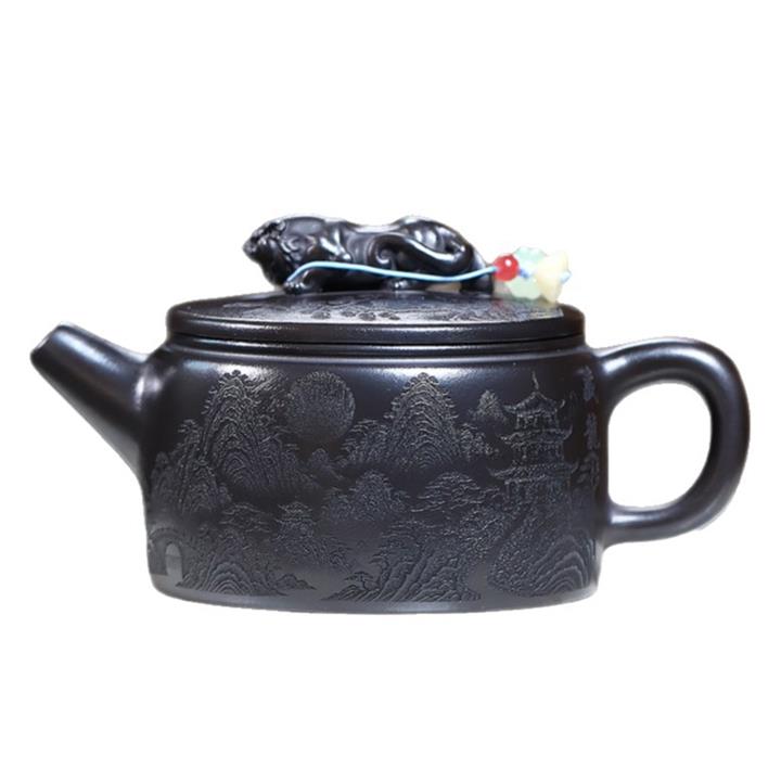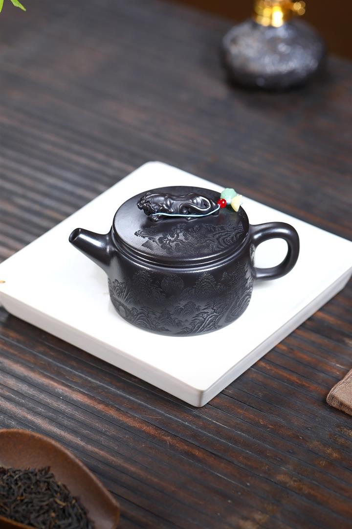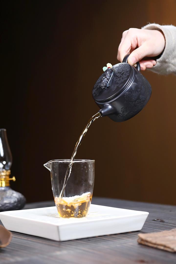 大紅袍還原燒松針壺紫砂壺POT5536