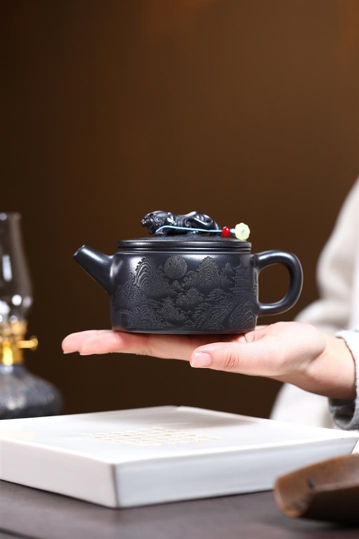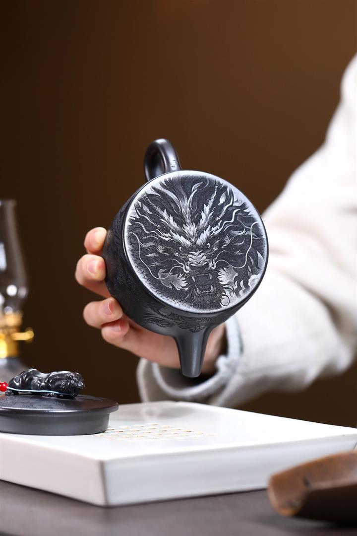 【作品介紹】此款壺形線條流暢,壺把,壺嘴,壺身壹氣呵成栩栩如生,是收藏把玩的好壺,泥料色澤古樸典雅,日久使用,漸露鋒芒,養成變化快,溫潤莊重,用其泡茶,使用的年代久,壺身就溫潤,泡出來的茶湯也就醇郁芳馨。