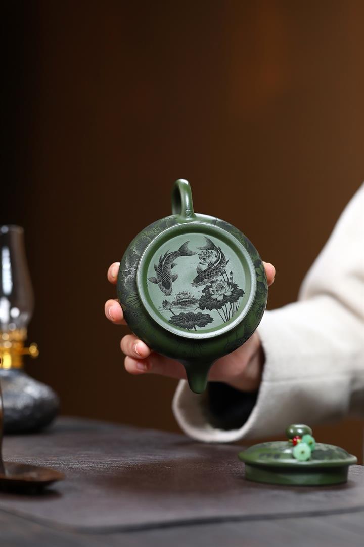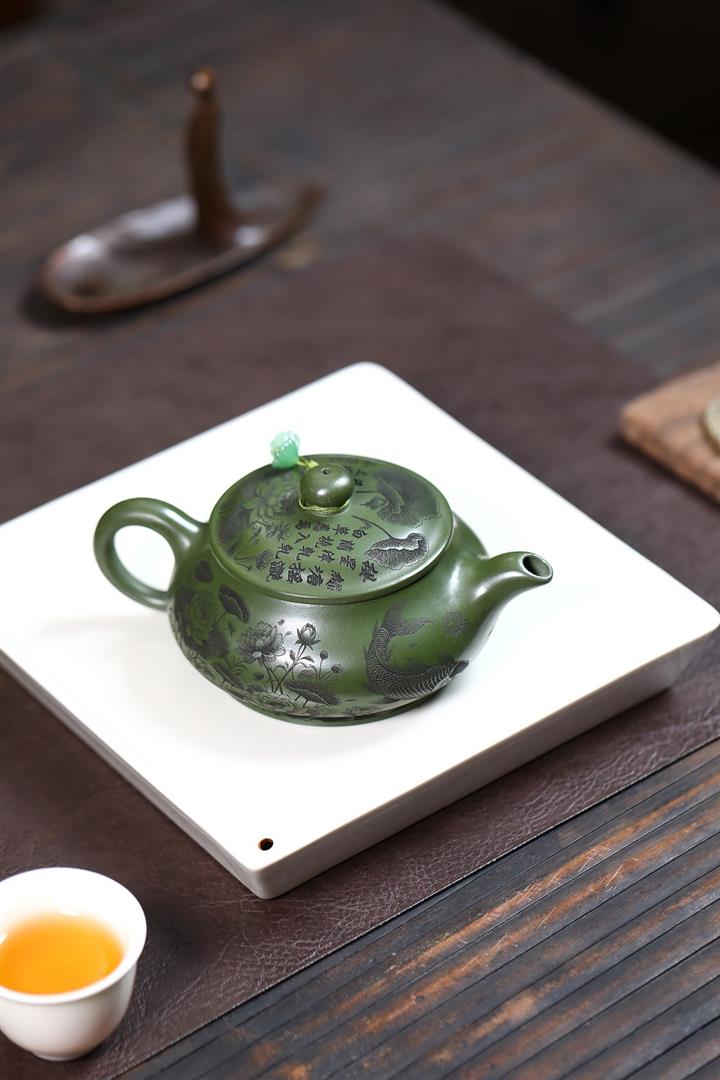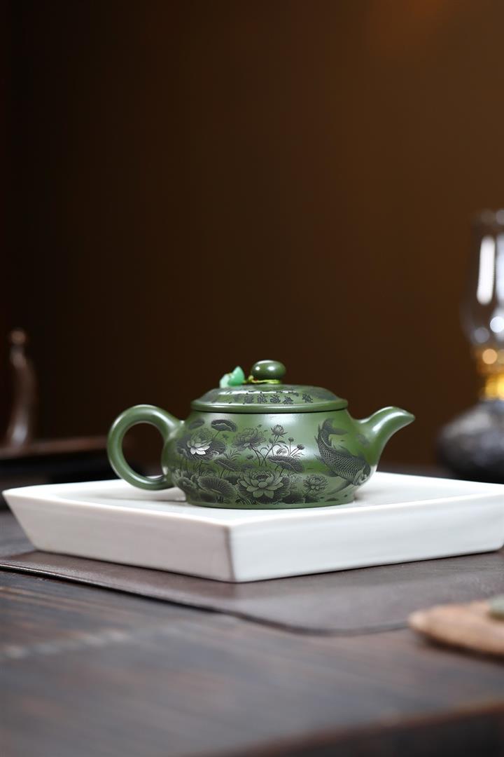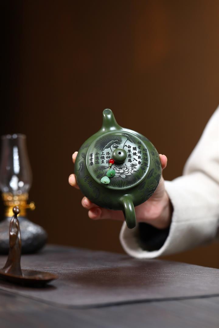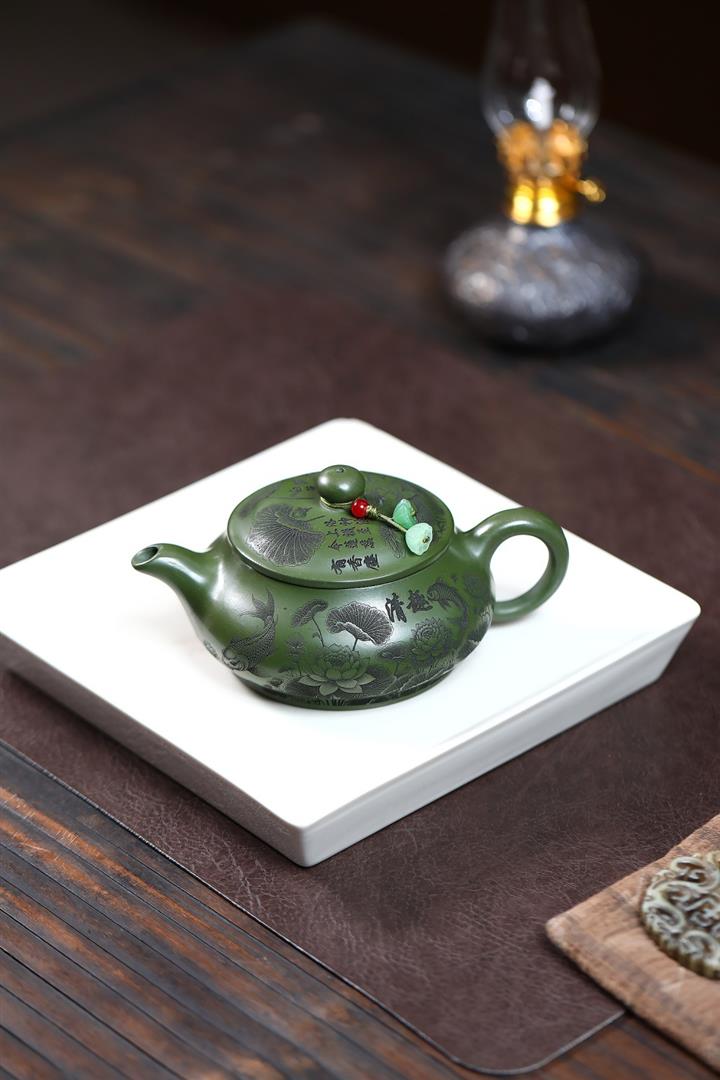 240cc原礦優質綠泥荷塘清趣明爐泡茶壺POT9575