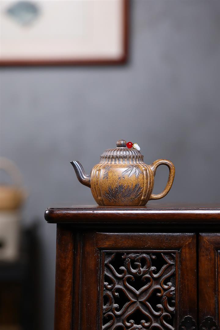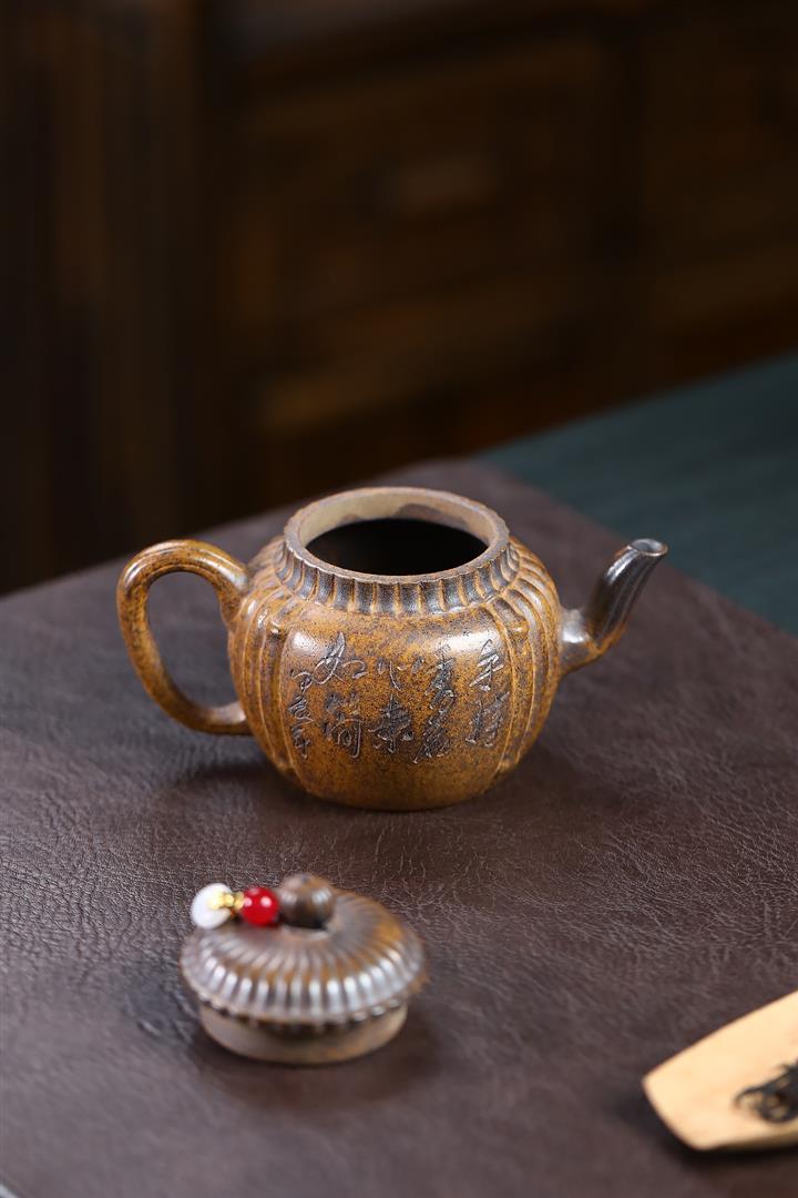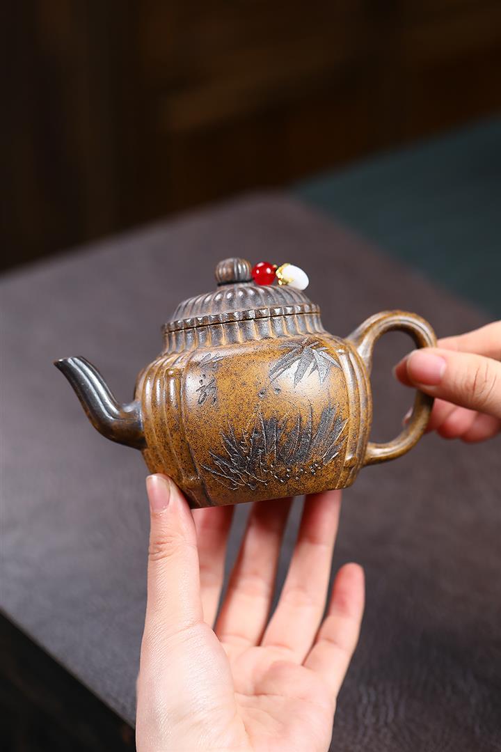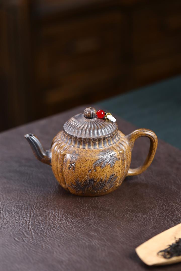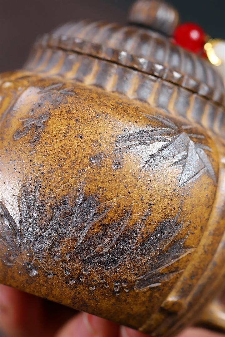 原礦石黃料手工刻繪無求紫砂壺 POT4022