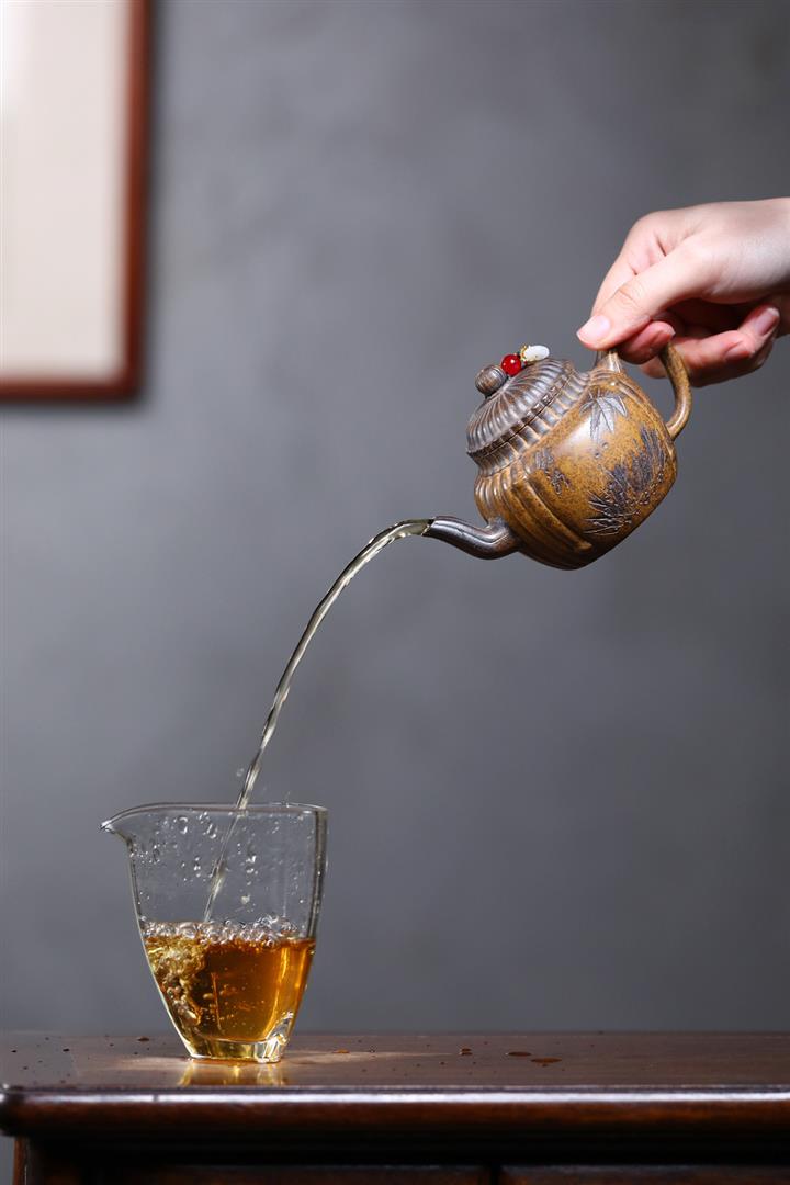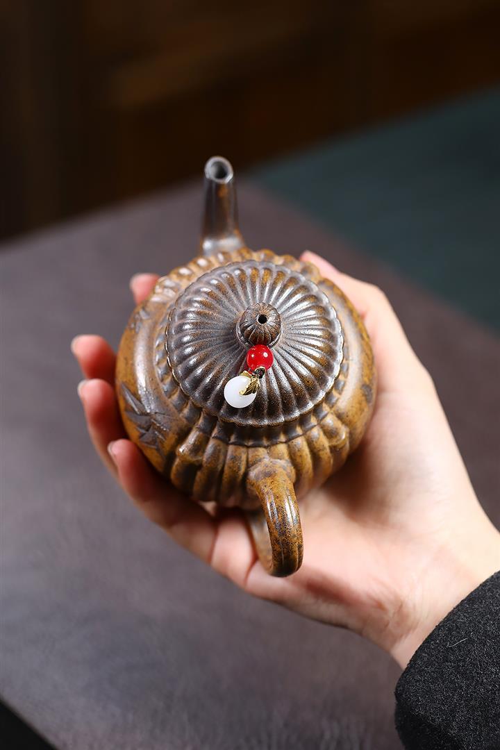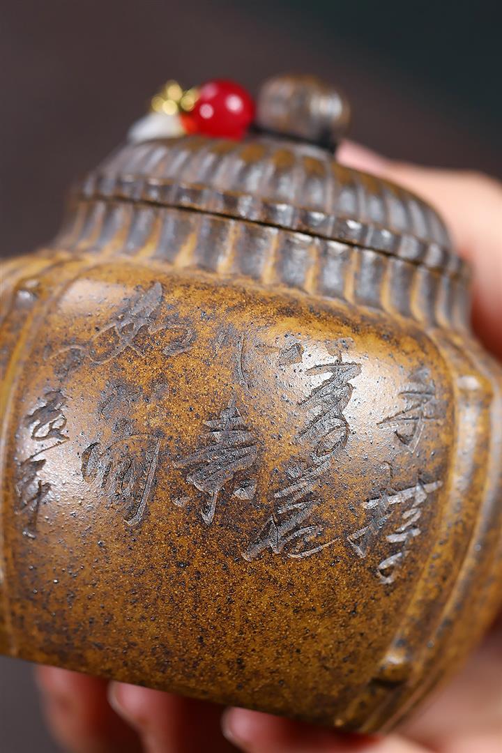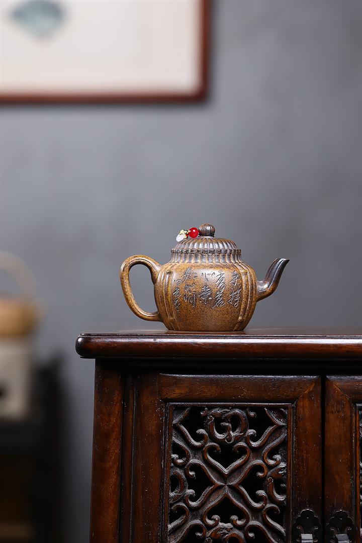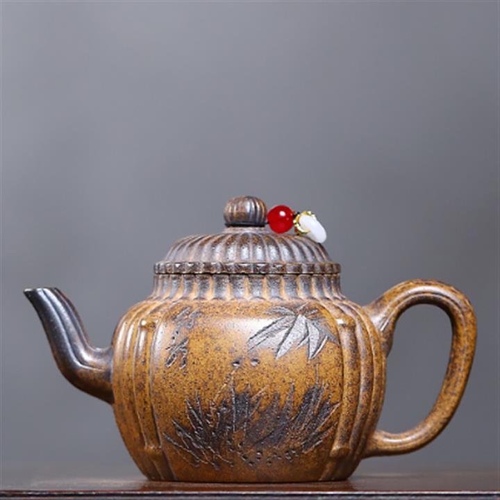 原礦石黃料手工刻繪無求紫砂壺 POT4022