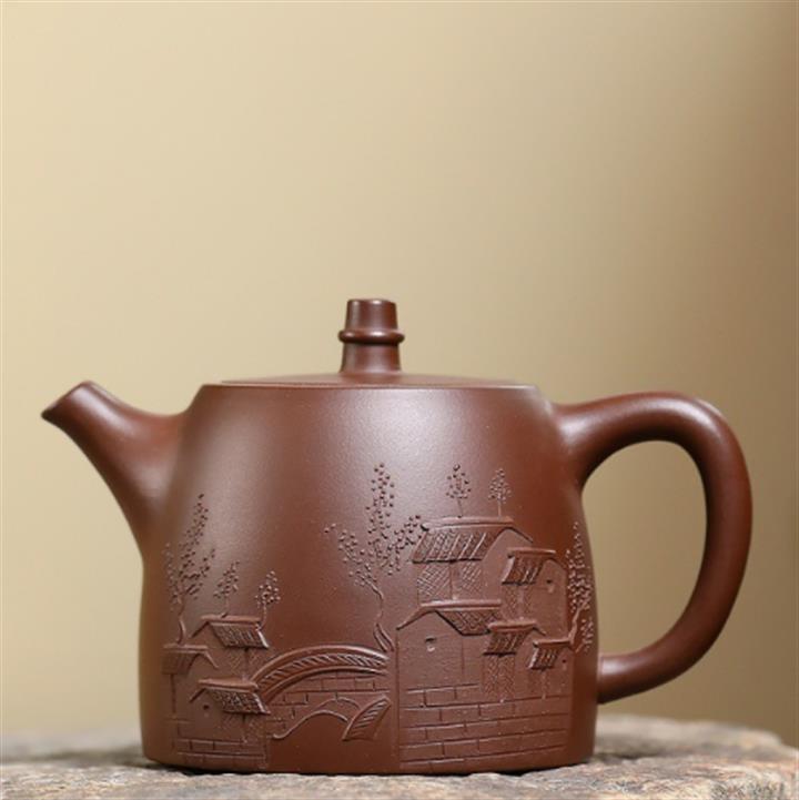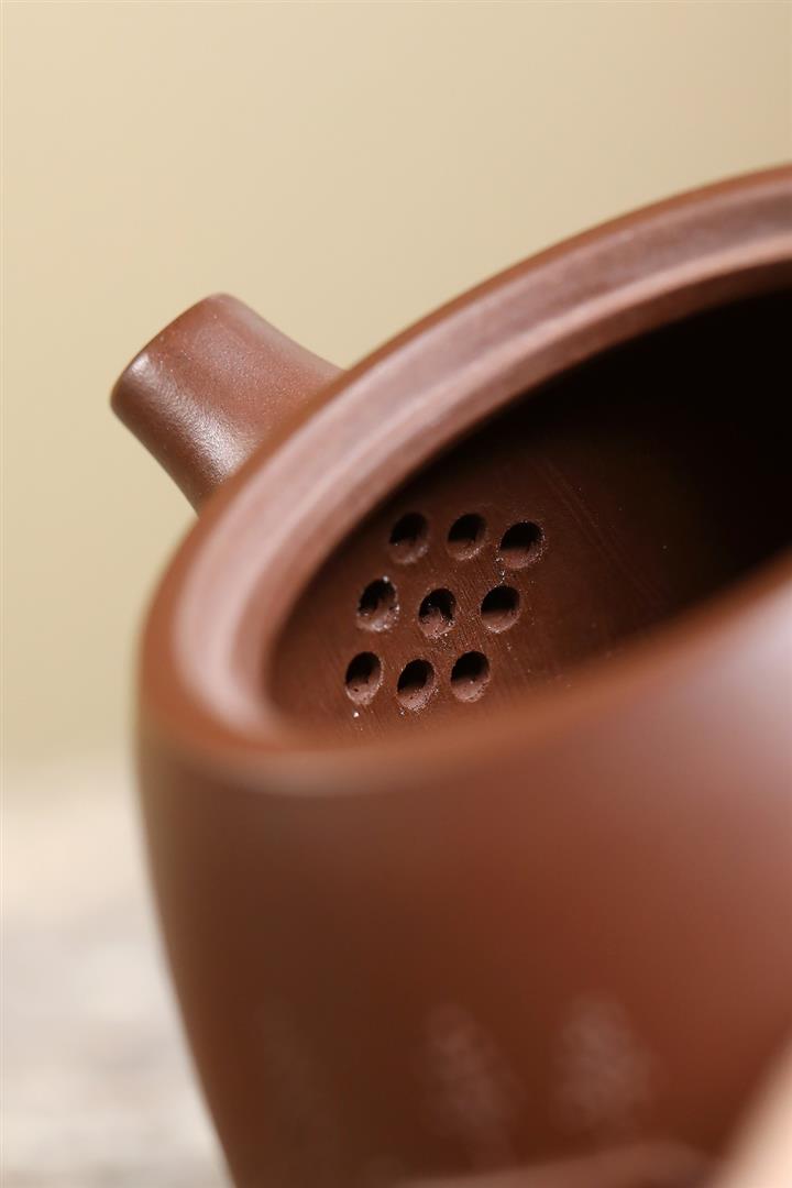 【作品介紹】此款壺形線條流暢,壺把,壺嘴,壺身壹氣呵成栩栩如生,是收藏把玩的好壺,泥料色澤古樸典雅,日久使用,漸露鋒芒,養成變化快,溫潤莊重,用其泡茶,使用的年代久,壺身就溫潤,泡出來的茶湯也就醇郁芳馨。