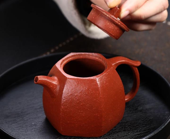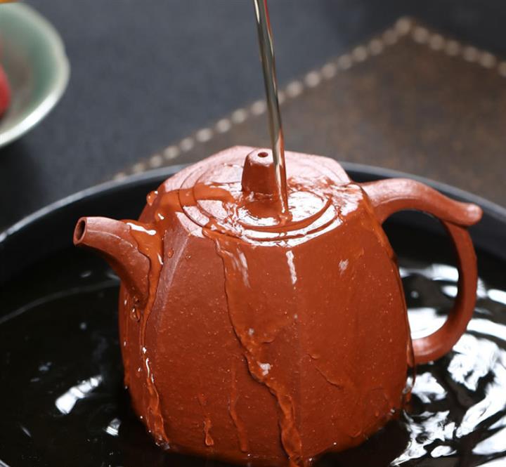 【泥料特點】砂土氣重,似淳實農民,日久使用,漸露鋒芒,養成變化,溫潤莊重。紫砂是壹種雙重氣孔結構的多孔性材質,氣孔微細,密度高。用紫砂壺沏茶,不失原味,且香不渙散,得茶之真香真味。紫砂使用越久,壺身色澤越發光亮照人,氣韻溫雅。紫砂壺長久使用器身會因撫摸擦拭,變得越發溫潤光澤。