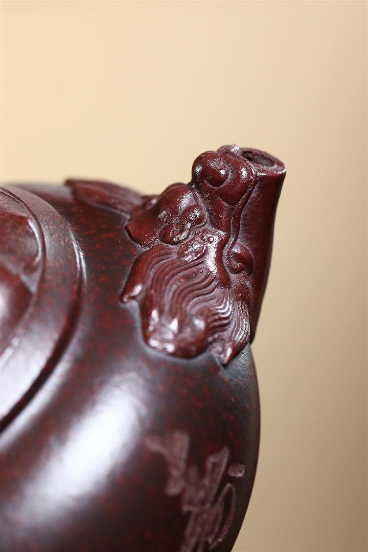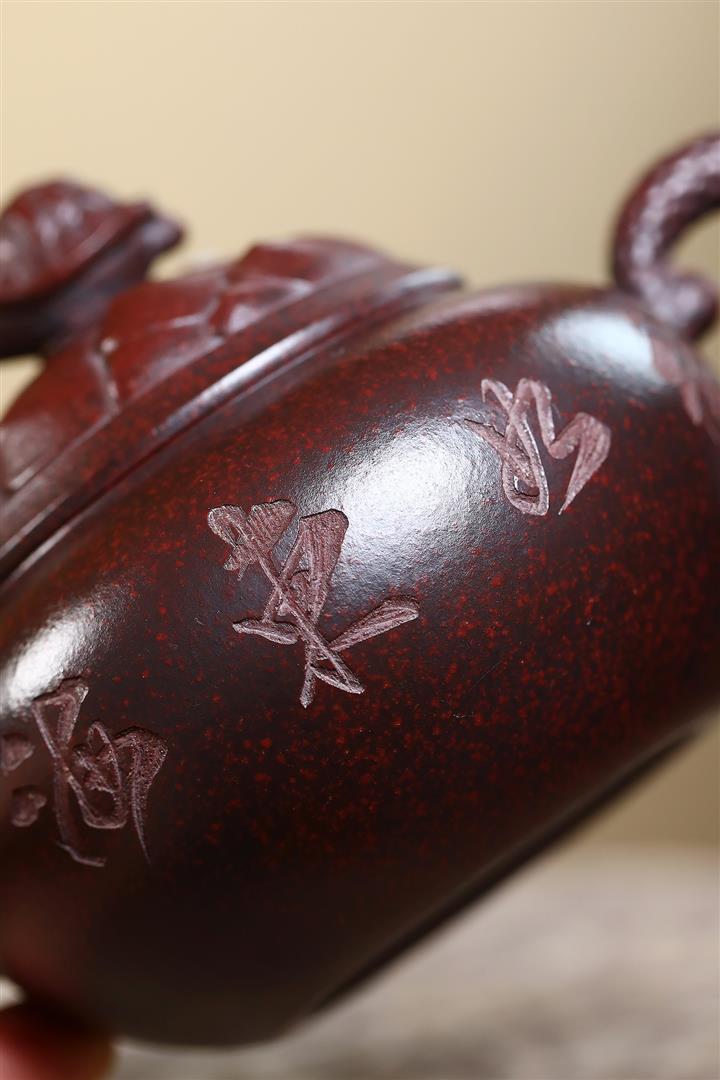 220cc原礦綠泥刻繪荷趣明爐茶壺POT8498