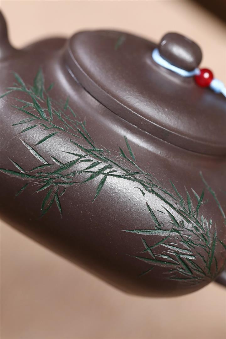 原礦家藏龍血砂刻竹高龍蛋壺POT6705