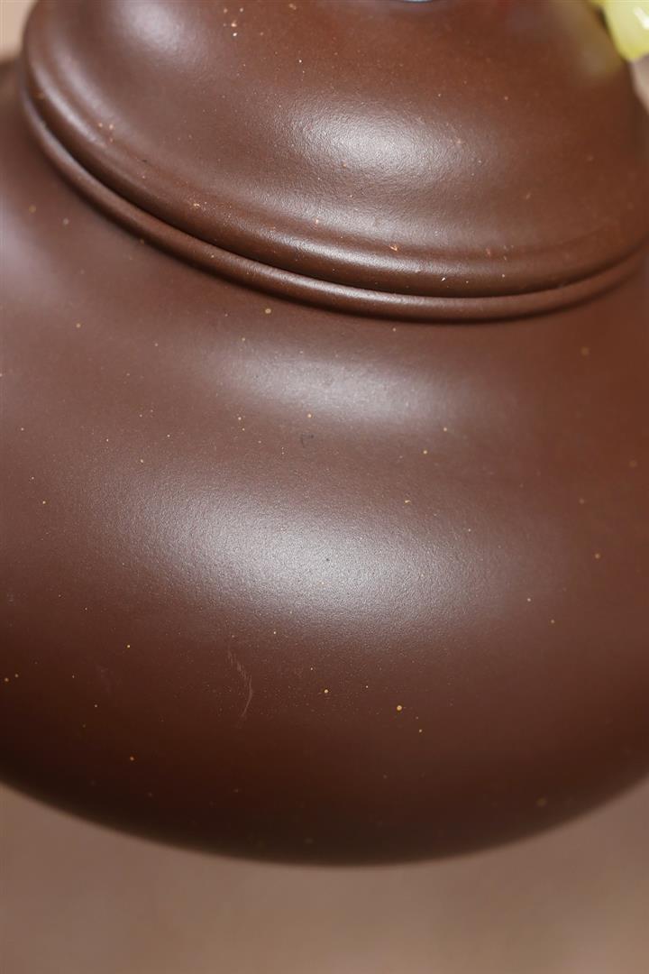 【泥料特點】砂土氣重,似淳實農民,日久使用,漸露鋒芒,養成變化,溫潤莊重。紫砂是壹種雙重氣孔結構的多孔性材質,氣孔微細,密度高。用紫砂壺沏茶,不失原味,且香不渙散,得茶之真香真味。紫砂使用越久,壺身色澤越發光亮照人,氣韻溫雅。紫砂壺長久使用器身會因撫摸擦拭,變得越發溫潤光澤。