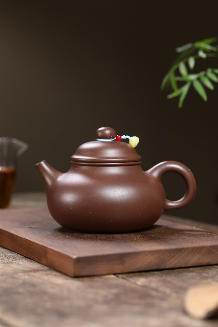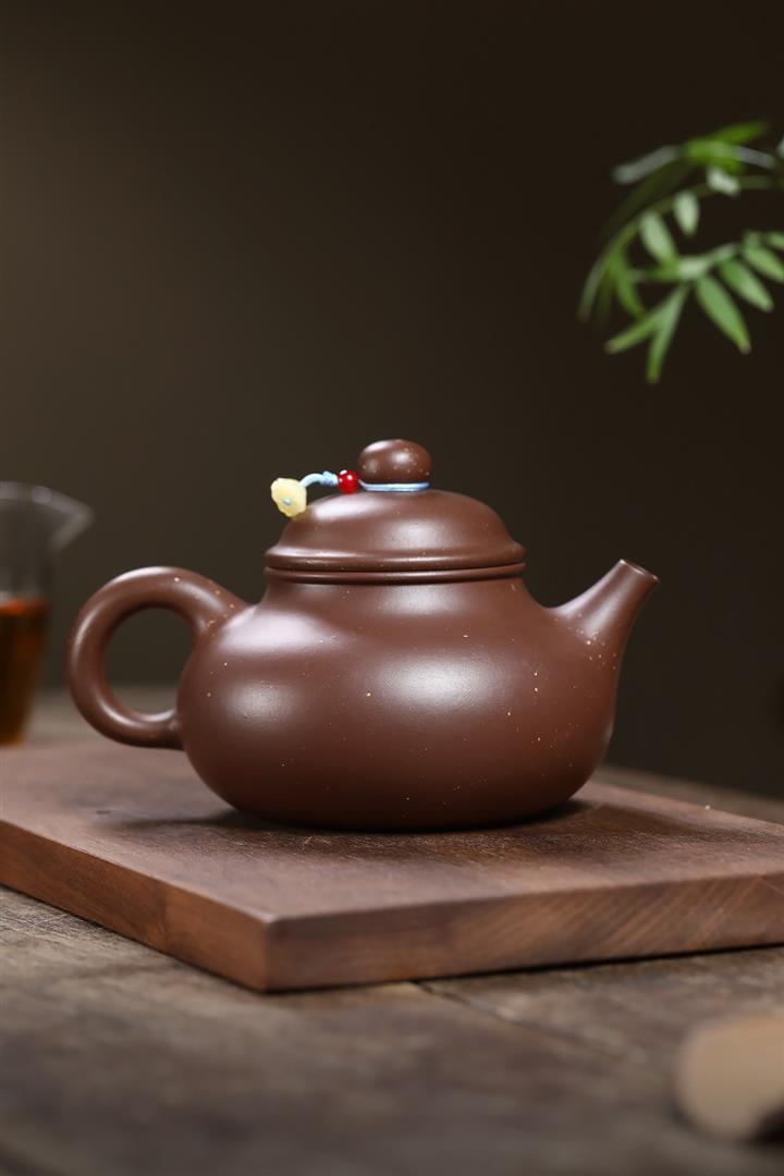 【作品介紹】此款壺形線條流暢,壺把,壺嘴,壺身壹氣呵成栩栩如生,是收藏把玩的好壺,泥料色澤古樸典雅,日久使用,漸露鋒芒,養成變化快,溫潤莊重,用其泡茶,使用的年代久,壺身就溫潤,泡出來的茶湯也就醇郁芳馨。