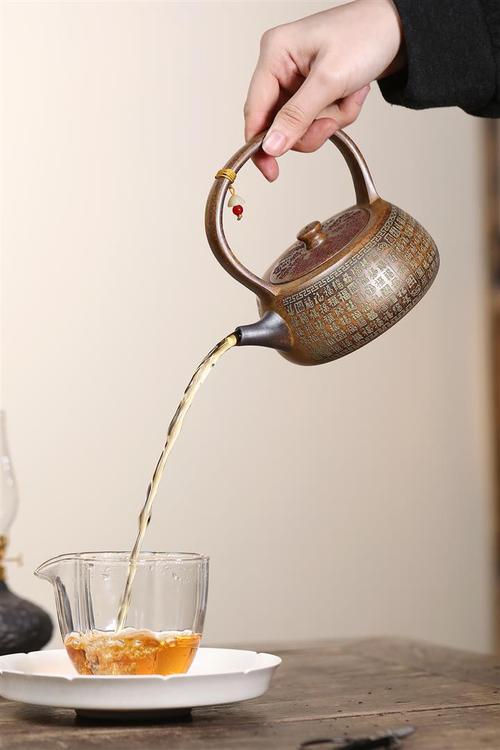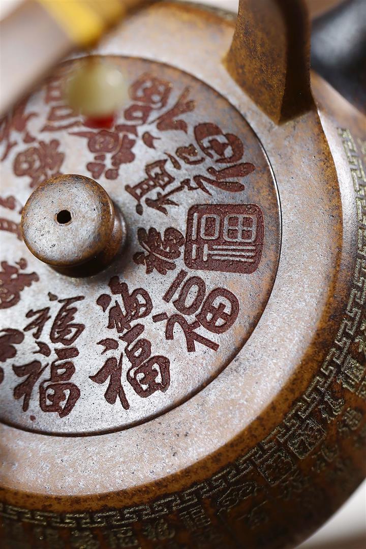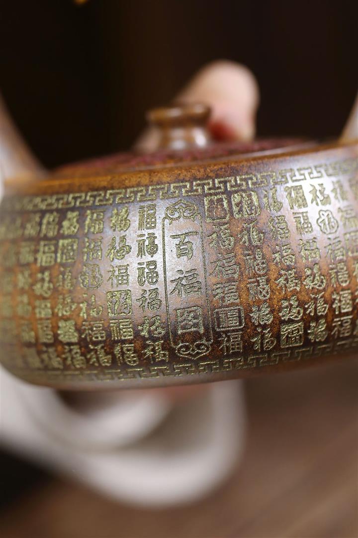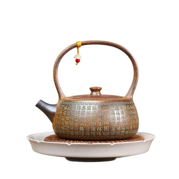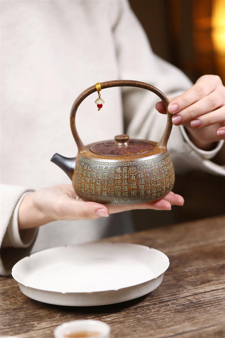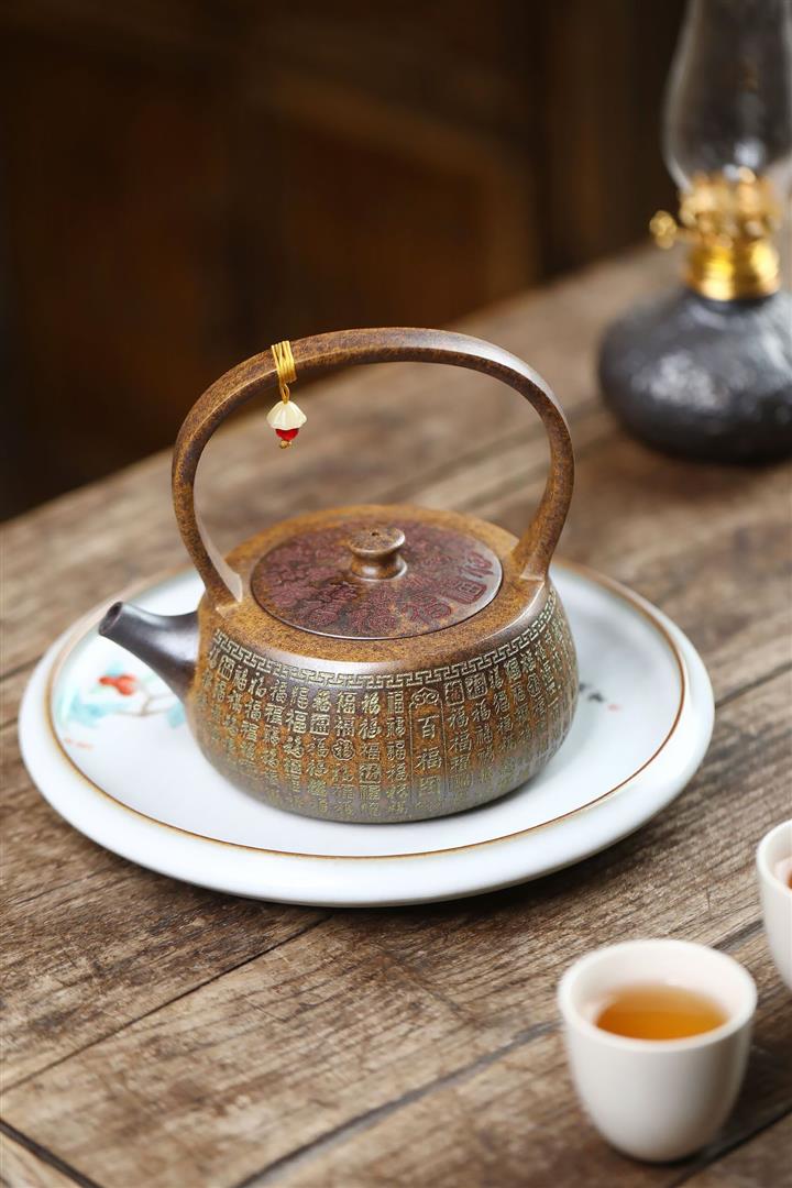 340cc龍骨金砂高溫柴燒百福提梁遇水變色泡茶壺POT9630