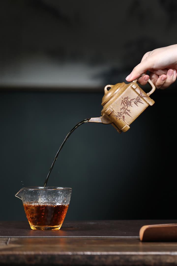 【泥料特點】砂土氣重,似淳實農民,日久使用,漸露鋒芒,養成變化,溫潤莊重。紫砂是壹種雙重氣孔結構的多孔性材質,氣孔微細,密度高。用紫砂壺沏茶,不失原味,且香不渙散,得茶之真香真味。紫砂使用越久,壺身色澤越發光亮照人,氣韻溫雅。紫砂壺長久使用器身會因撫摸擦拭,變得越發溫潤光澤。