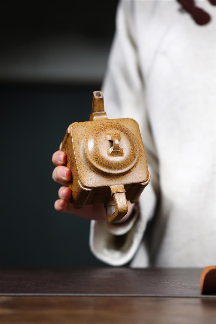 朱泥捂灰金龜換酒手工描金紫砂壺POT6500