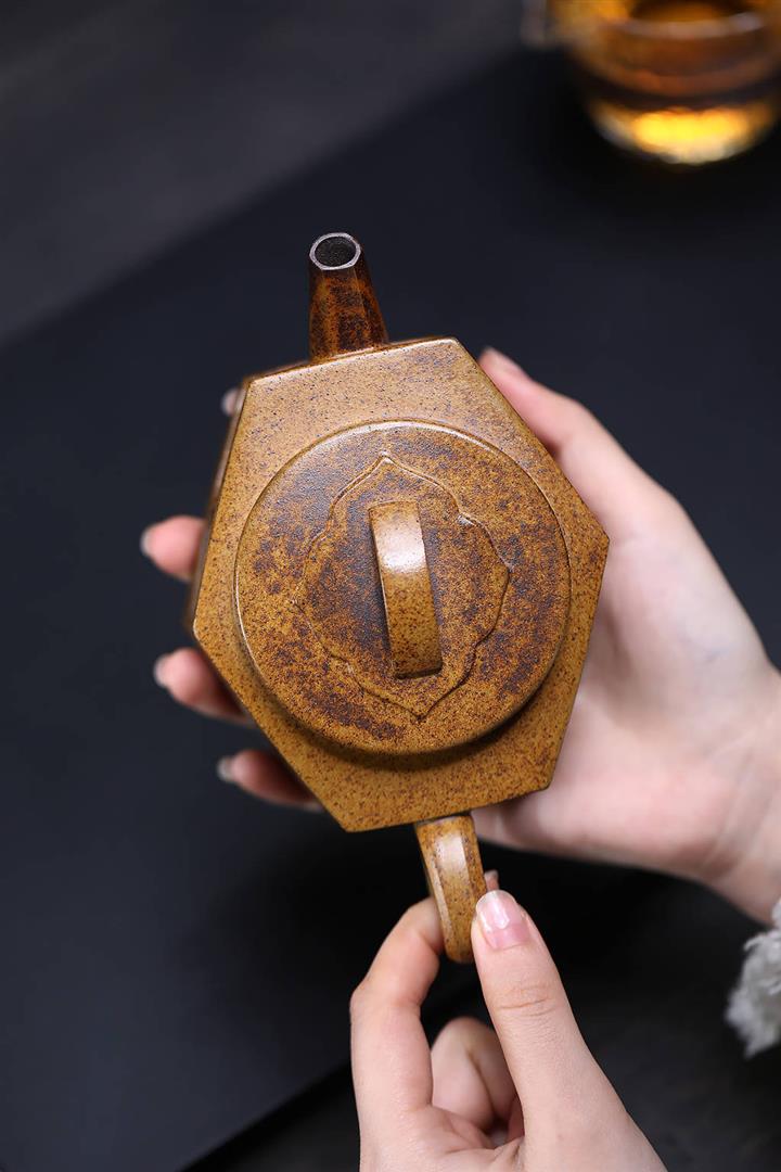 190cc原礦石黃泥金砂虛扁高端茶壺POT8472
