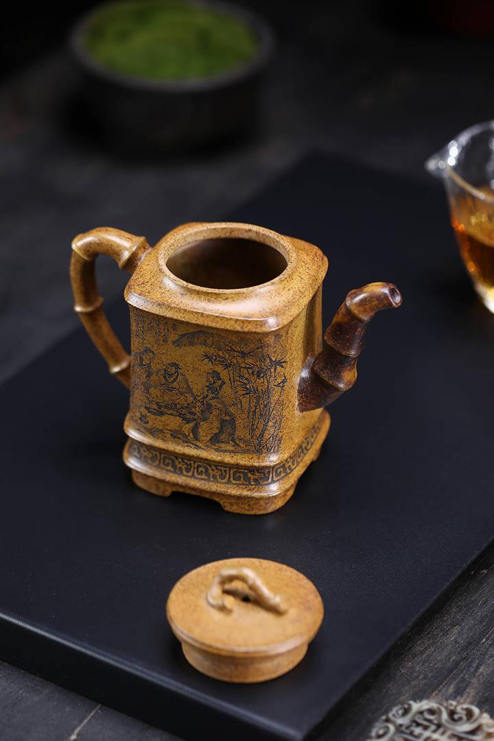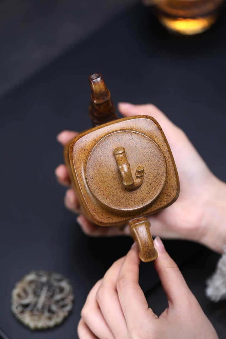 300cc龍骨金砂特高溫燒四方竹段泡茶壺POT9649