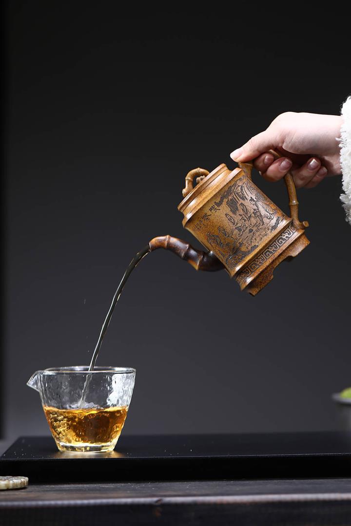 【作品介紹】此款壺形線條流暢,壺把,壺嘴,壺身壹氣呵成栩栩如生,是收藏把玩的好壺,泥料色澤古樸典雅,日久使用,漸露鋒芒,養成變化快,溫潤莊重,用其泡茶,使用的年代久,壺身就溫潤,泡出來的茶湯也就醇郁芳馨。
