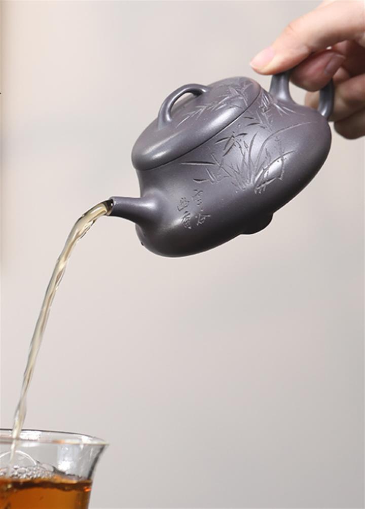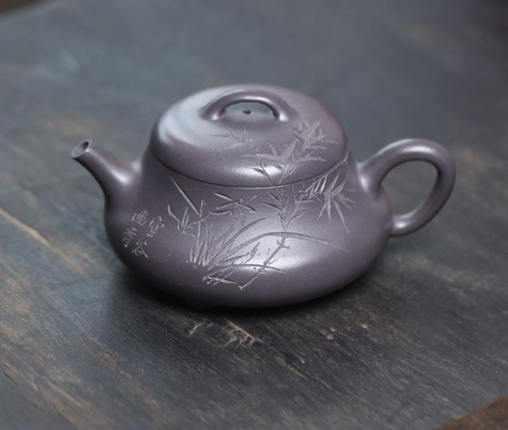 【泥料特點】砂土氣重,似淳實農民,日久使用,漸露鋒芒,養成變化,溫潤莊重。紫砂是壹種雙重氣孔結構的多孔性材質,氣孔微細,密度高。用紫砂壺沏茶,不失原味,且香不渙散,得茶之真香真味。紫砂使用越久,壺身色澤越發光亮照人,氣韻溫雅。紫砂壺長久使用器身會因撫摸擦拭,變得越發溫潤光澤。