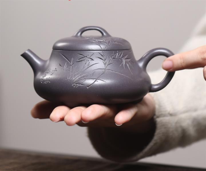 【作品介紹】此款壺形線條流暢,壺把,壺嘴,壺身壹氣呵成栩栩如生,是收藏把玩的好壺,泥料色澤古樸典雅,日久使用,漸露鋒芒,養成變化快,溫潤莊重,用其泡茶,使用的年代久,壺身就溫潤,泡出來的茶湯也就醇郁芳馨。