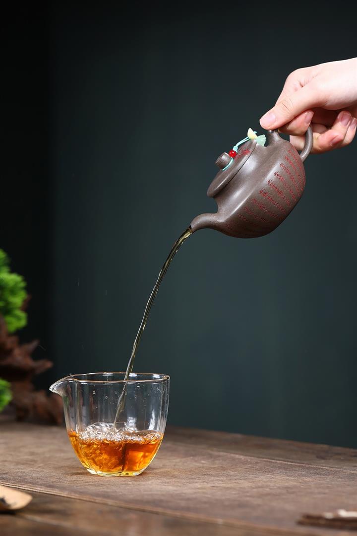 【泥料特點】砂土氣重,似淳實農民,日久使用,漸露鋒芒,養成變化,溫潤莊重。紫砂是壹種雙重氣孔結構的多孔性材質,氣孔微細,密度高。用紫砂壺沏茶,不失原味,且香不渙散,得茶之真香真味。紫砂使用越久,壺身色澤越發光亮照人,氣韻溫雅。紫砂壺長久使用器身會因撫摸擦拭,變得越發溫潤光澤。