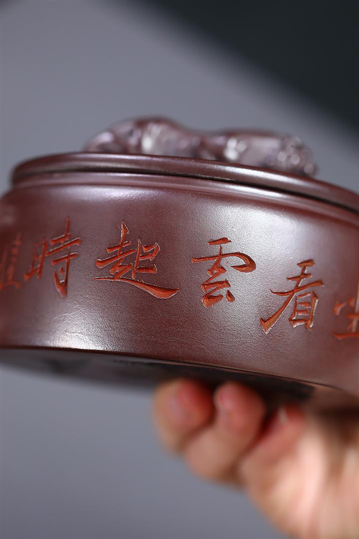 【泥料特點】砂土氣重,似淳實農民,日久使用,漸露鋒芒,養成變化,溫潤莊重。紫砂是壹種雙重氣孔結構的多孔性材質,氣孔微細,密度高。用紫砂壺沏茶,不失原味,且香不渙散,得茶之真香真味。紫砂使用越久,壺身色澤越發光亮照人,氣韻溫雅。紫砂壺長久使用器身會因撫摸擦拭,變得越發溫潤光澤。