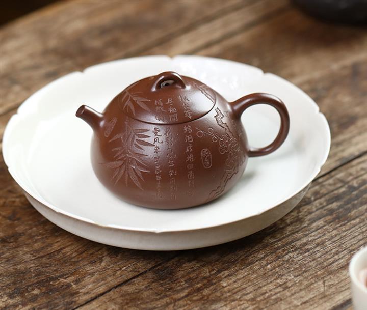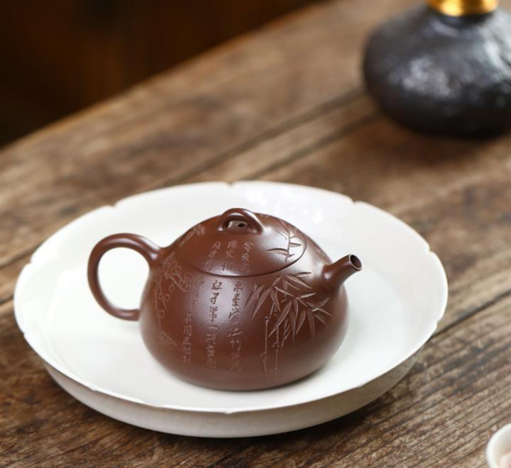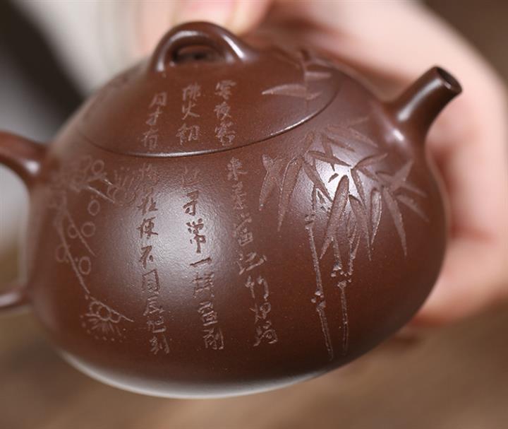 【泥料特點】砂土氣重,似淳實農民,日久使用,漸露鋒芒,養成變化,溫潤莊重。紫砂是壹種雙重氣孔結構的多孔性材質,氣孔微細,密度高。用紫砂壺沏茶,不失原味,且香不渙散,得茶之真香真味。紫砂使用越久,壺身色澤越發光亮照人,氣韻溫雅。紫砂壺長久使用器身會因撫摸擦拭,變得越發溫潤光澤。