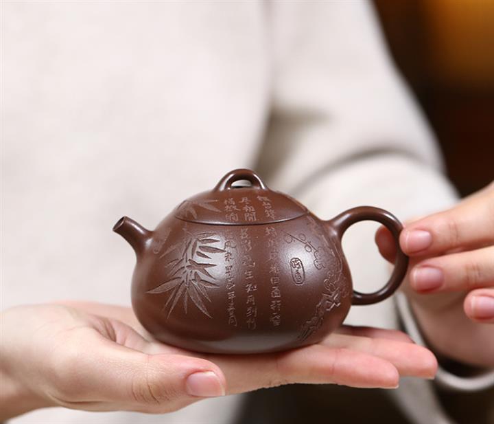 【作品介紹】此款壺形線條流暢,壺把,壺嘴,壺身壹氣呵成栩栩如生,是收藏把玩的好壺,泥料色澤古樸典雅,日久使用,漸露鋒芒,養成變化快,溫潤莊重,用其泡茶,使用的年代久,壺身就溫潤,泡出來的茶湯也就醇郁芳馨。