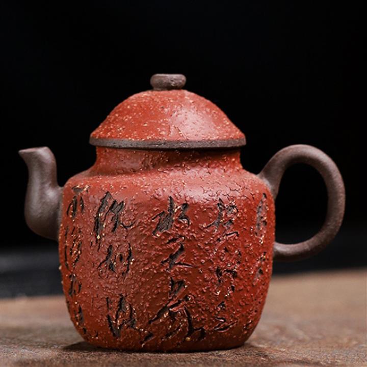 190cc原礦紅降坡傲梅圓瓦茶壺POT9193