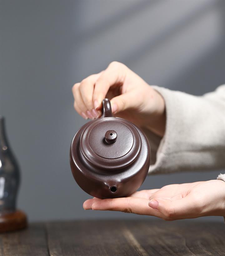 【泥料特點】砂土氣重,似淳實農民,日久使用,漸露鋒芒,養成變化,溫潤莊重。紫砂是壹種雙重氣孔結構的多孔性材質,氣孔微細,密度高。用紫砂壺沏茶,不失原味,且香不渙散,得茶之真香真味。紫砂使用越久,壺身色澤越發光亮照人,氣韻溫雅。紫砂壺長久使用器身會因撫摸擦拭,變得越發溫潤光澤。