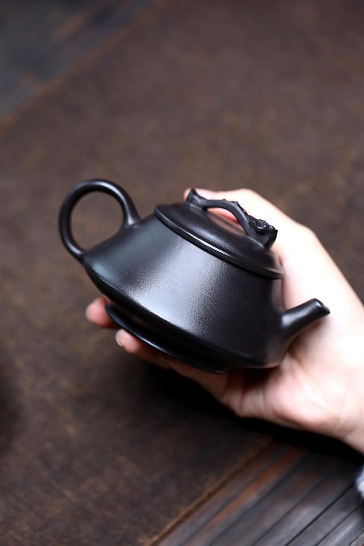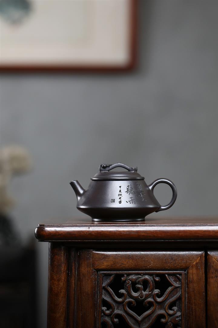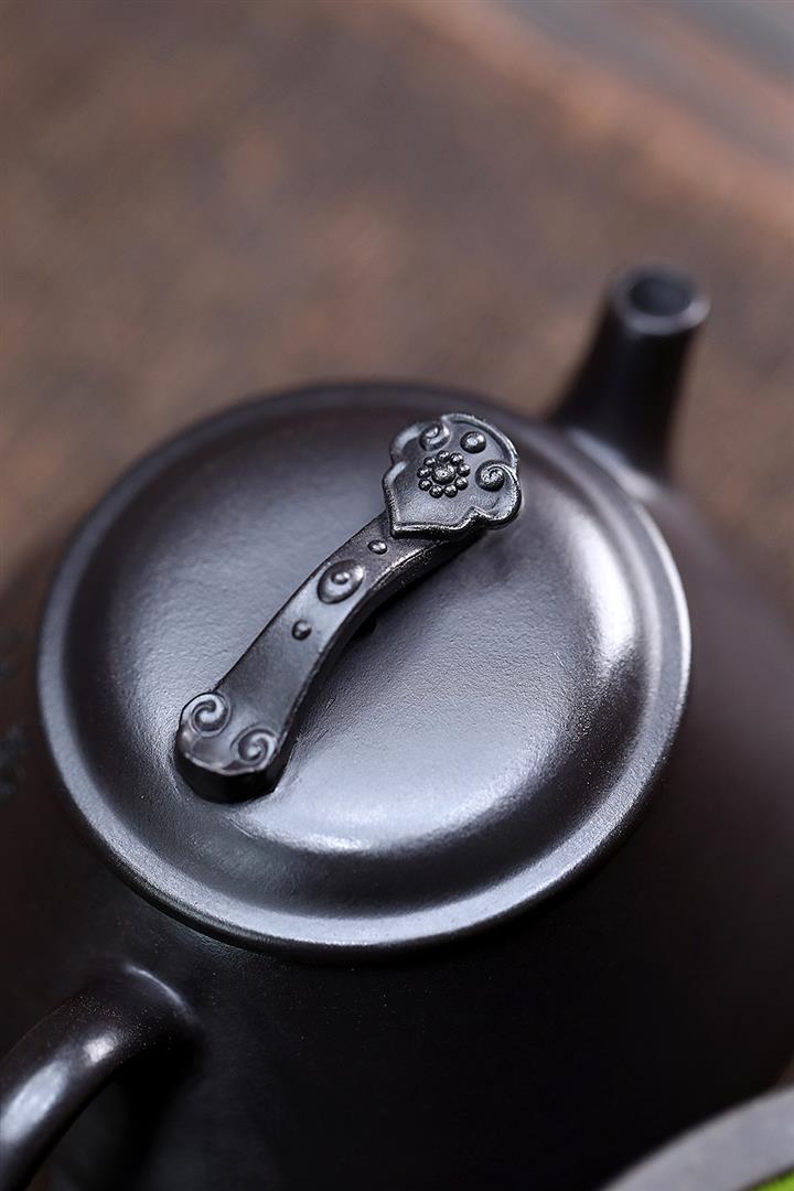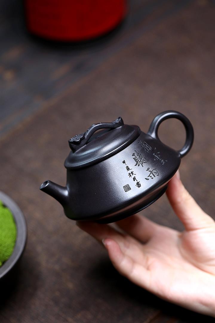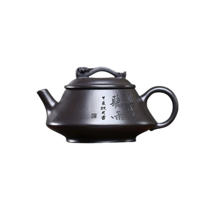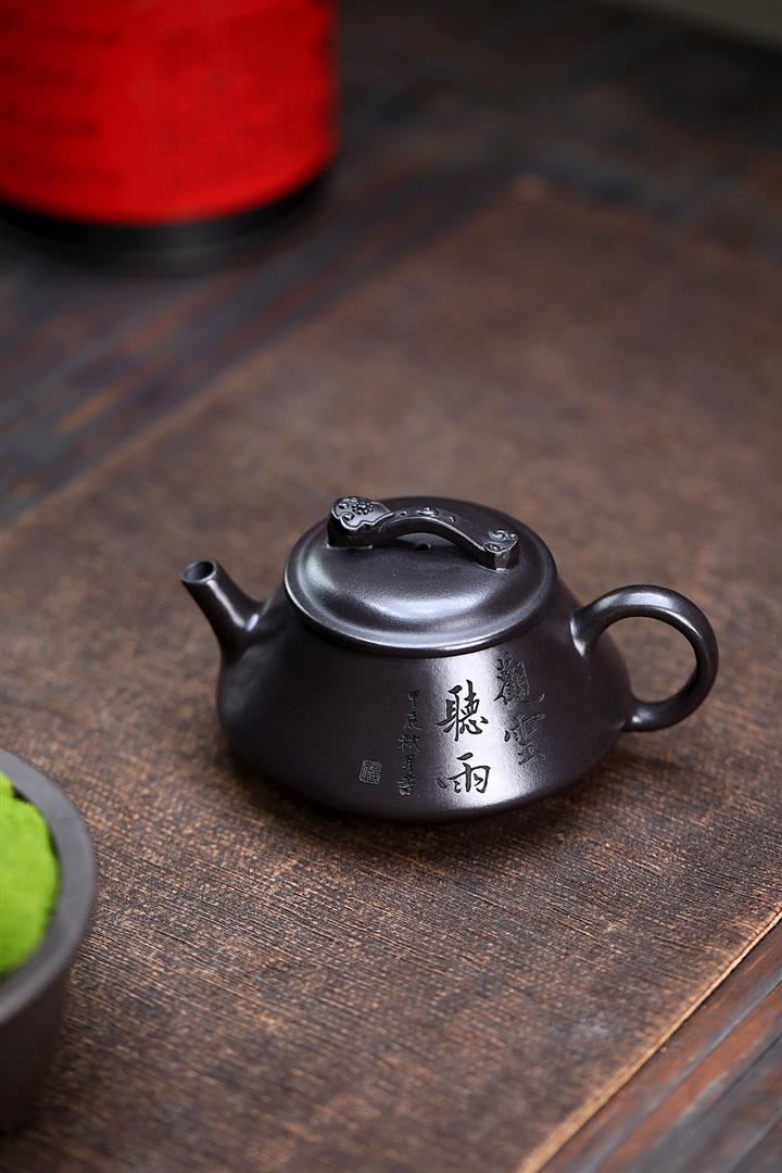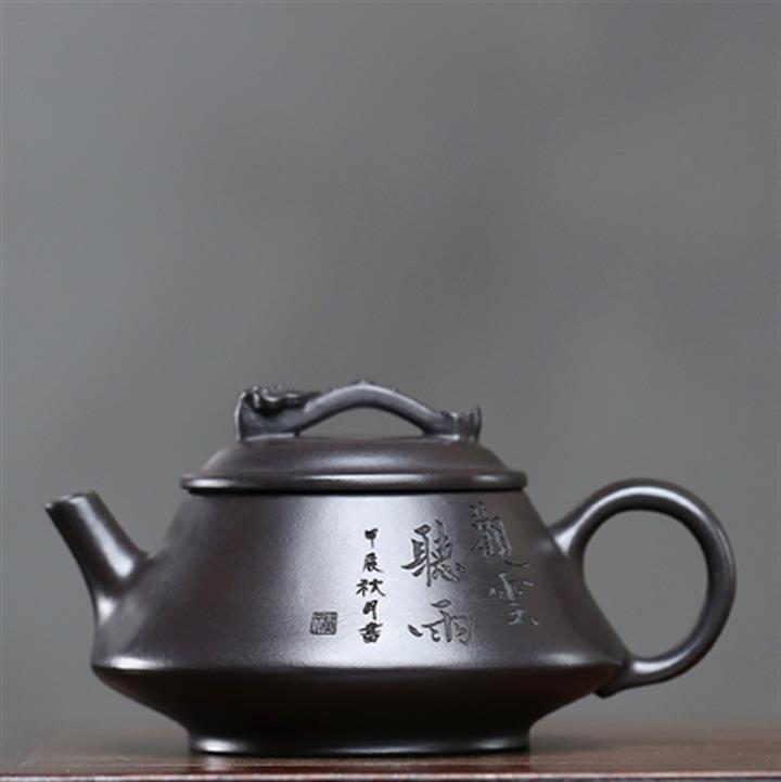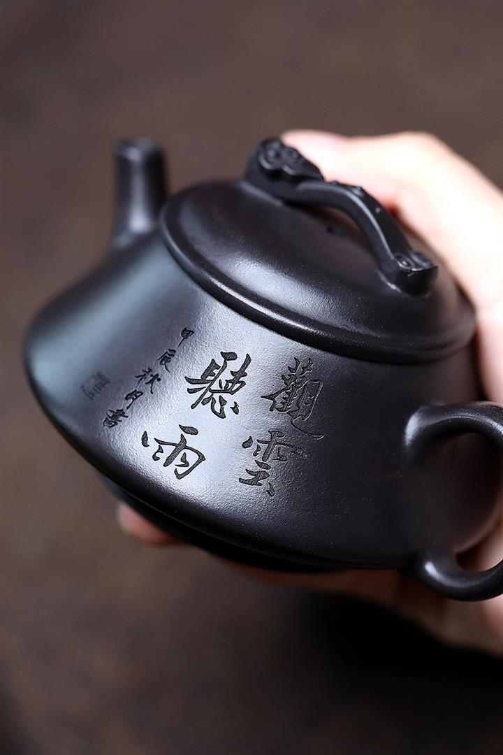 180cc原礦黑泥刻繪觀雲聽雨泡茶壺POT9716